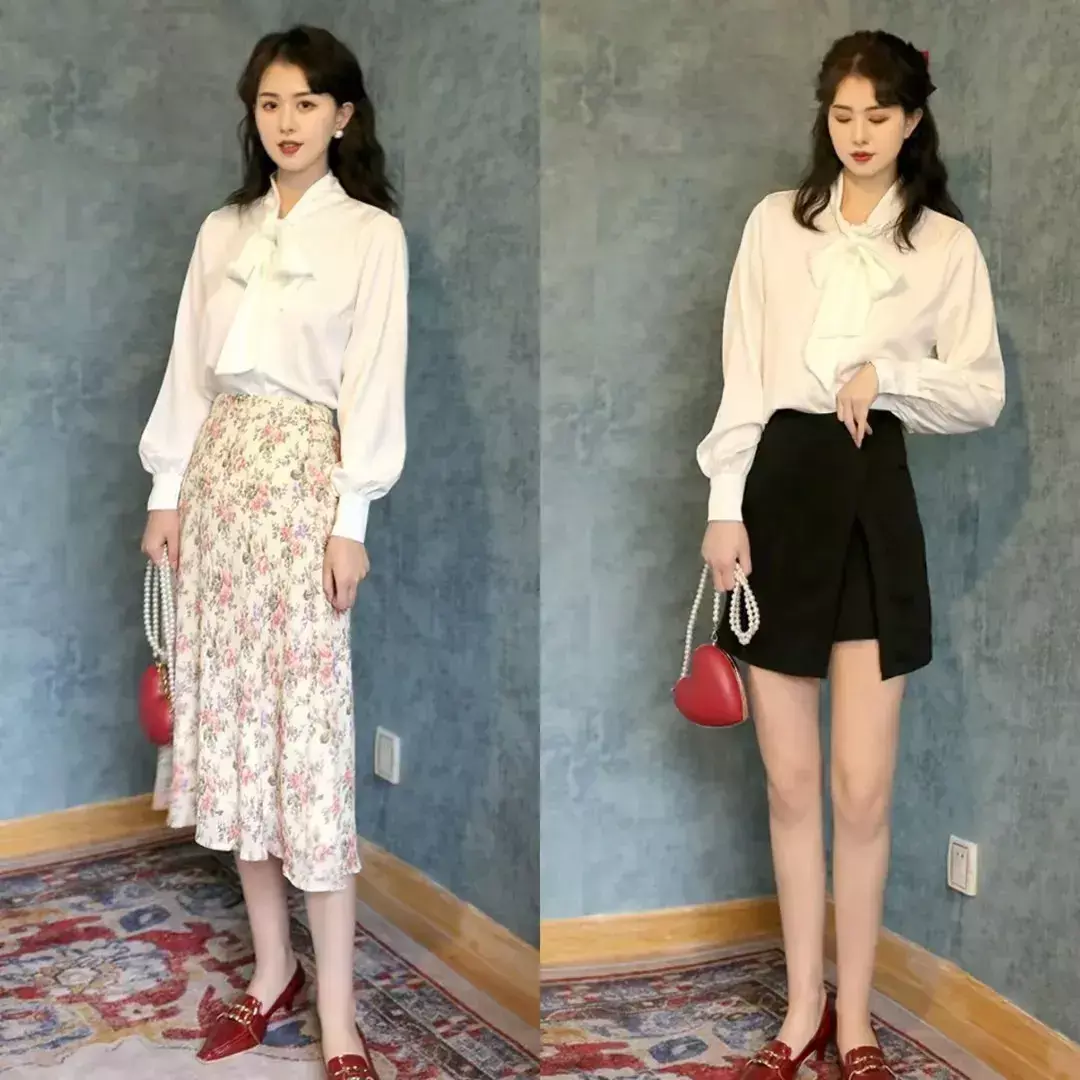 不管你选择是什么样的衬衫版型,衣服颜色尽量不花哨,不紧身搭配上半身裙子后,会能展现出不一样的气质,修饰掉我们腿粗胯宽或者是腰间赘肉等这些缺点,让咱们也能拥有好的身材比例变得更加的优雅有气质,你喜欢的话,赶紧试一下吧。