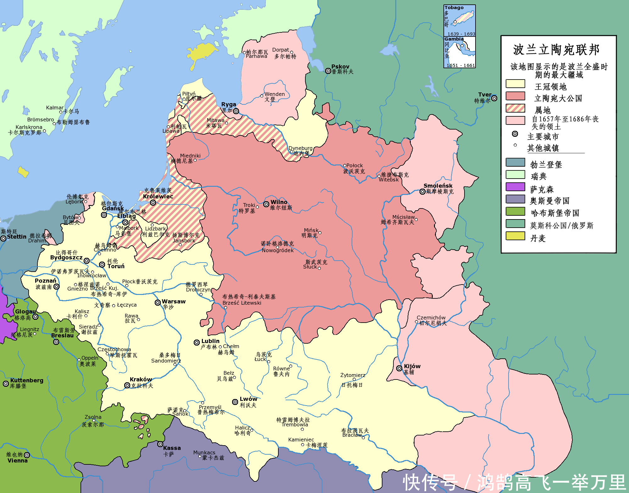 从那时起俄国和波兰为争夺乌克兰的土地一直打到1667年。战后俄国和波兰沿着第聂伯河把乌克兰给瓜分了。此后波兰从欧洲列强的宝座上跌落下来,直到1795年波兰被俄国、普鲁士、奥地利瓜分。从此波兰亡国达123年之久。在1618年至1648年的欧洲30年战争中瑞典在古斯塔夫大帝的领导下赢得了辉煌的胜利。瑞典在北欧波罗的海的霸业持续半个世纪后就在1700年至1721年的北方战争中被俄国重创。