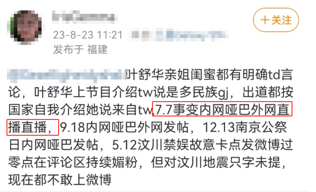 除此之外,我们还可以看到,叶舒华还多次在一些敏感日期进行一些娱乐活动,这难免会让很多网友表示不满。毕竟,在这样令人心痛的日子里,身为一个中国人,不仅内心铭记历史,甚至直接公开多次在社交场合娱乐。明星本就该承担起带头作用,但叶舒华好像总是会专门在这些敏感时期做出一些不对的引导。