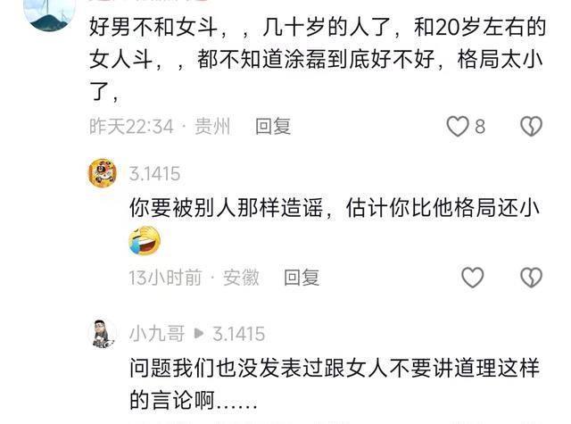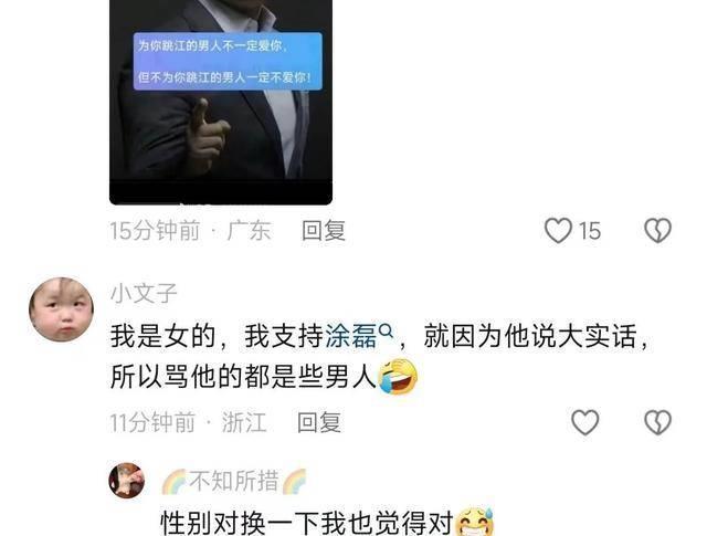 只有一些曾经的女权粉还在挺他,但也被很多网友反对,还用曾经涂磊的话怼了回去。