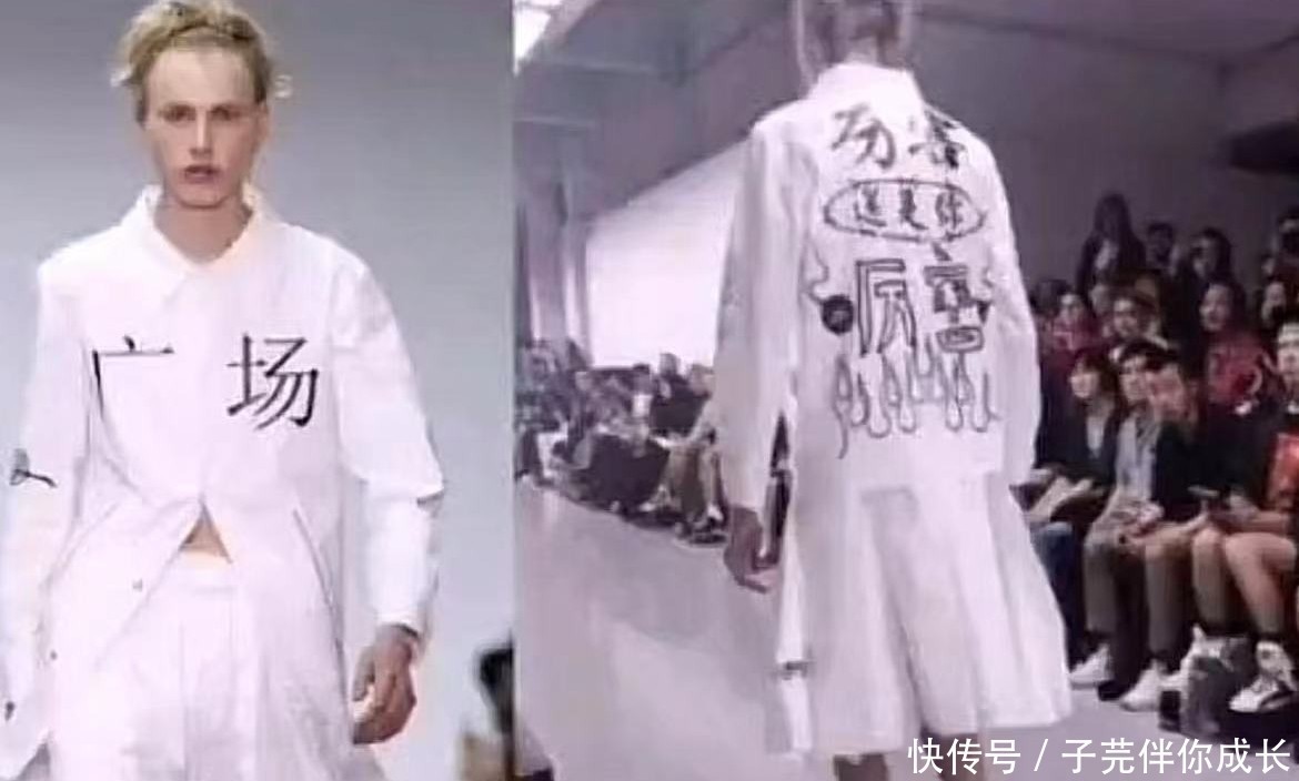 还有设计师在女款衬衣的胸前,印了两个字“广场”,这也太欺负人了吧,要是模特能看懂,肯定不愿意穿。