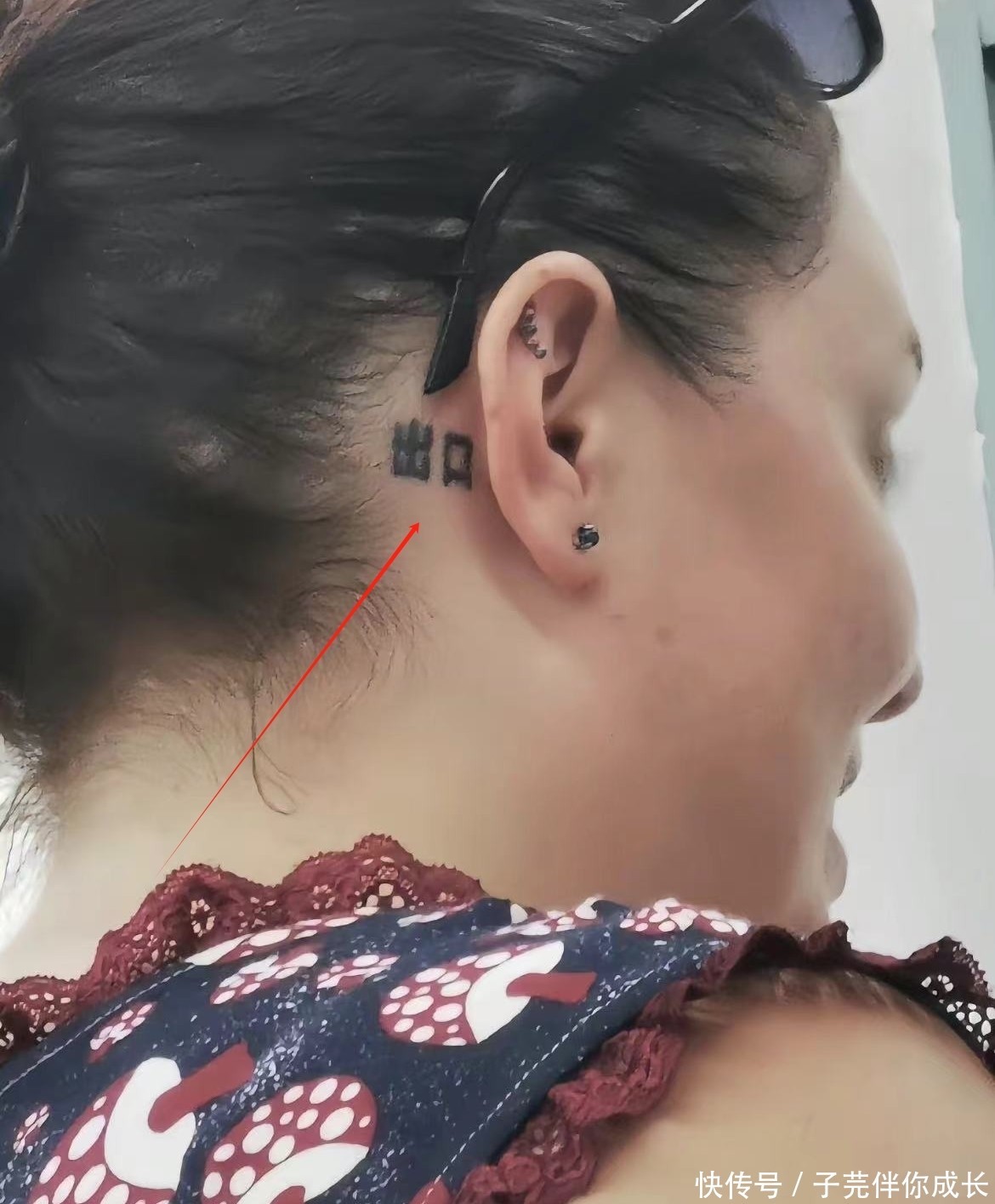 我最佩服的是这位美女,她在耳朵后面纹了两个字“出口”,非常有意境,把中文的精髓给掌握了。