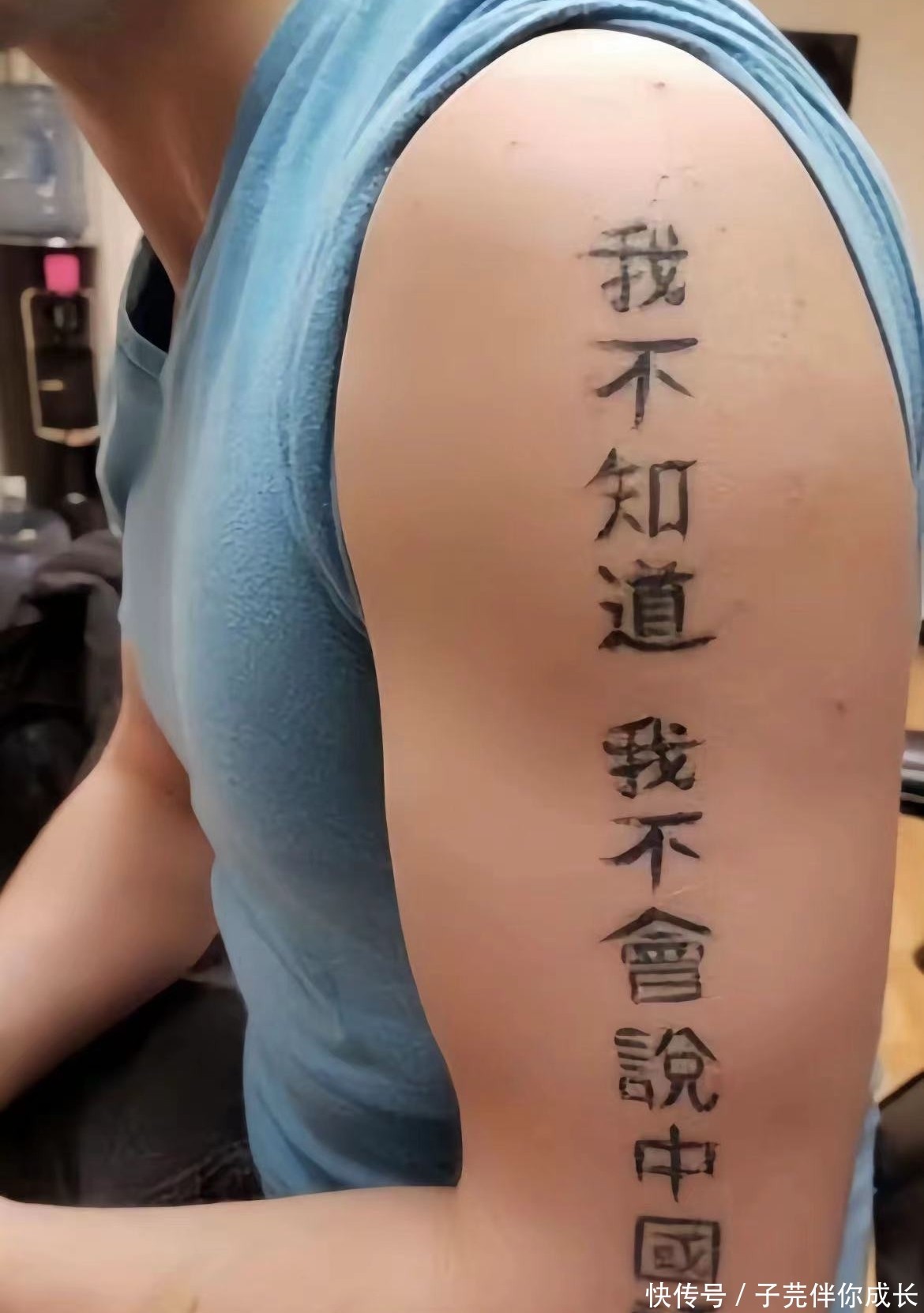 还有人更搞笑,害怕有人问自己问题,提前在胳膊上纹一行字“我不知道,我不会说中国话”,估计见到他的人,都会想多聊几句,一看就是实在人。
