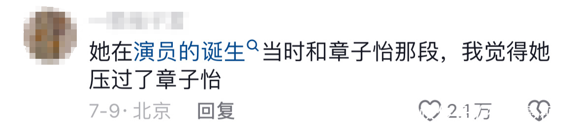 2017年,她参加了《演员的诞生》,台上对战章子怡,出演电影《青衣》选段。
