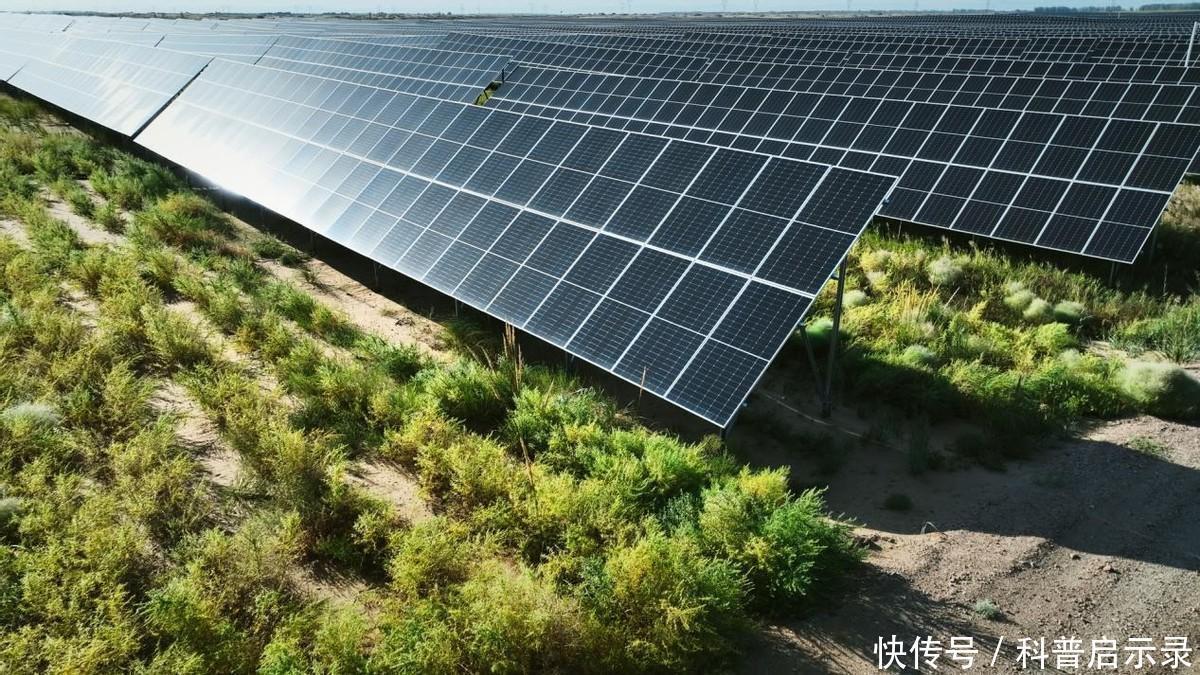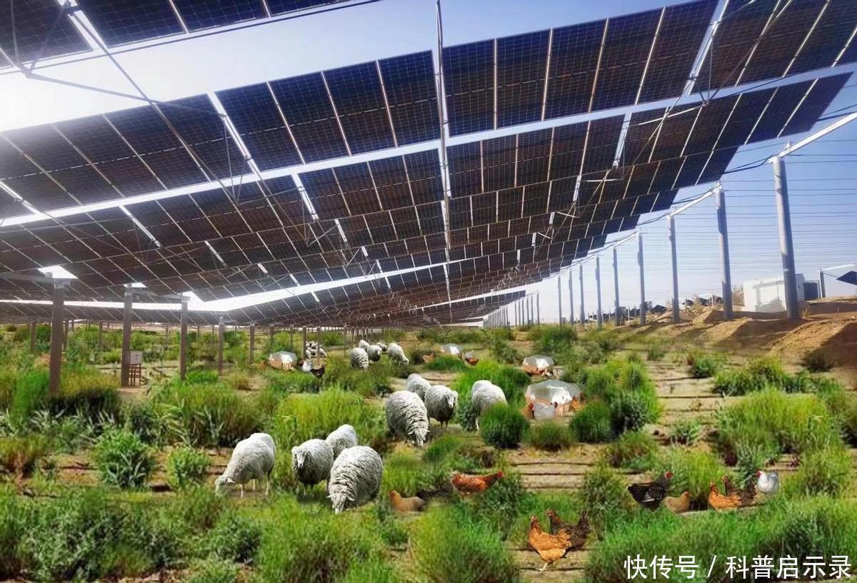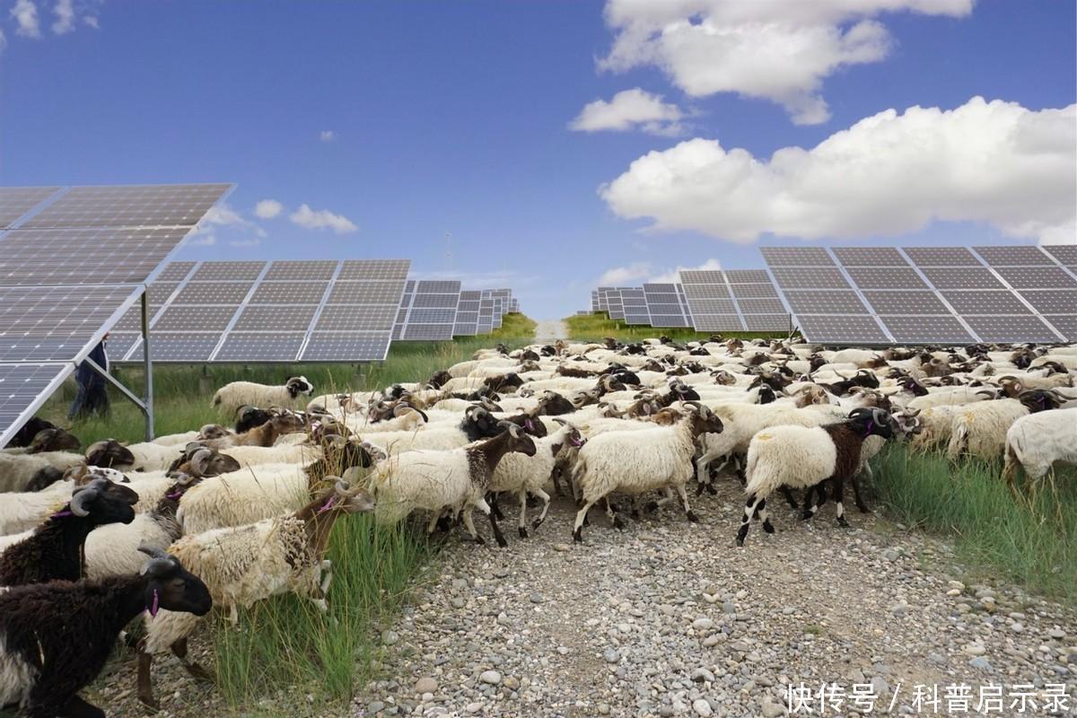 在中国的大沙漠里,光伏发电真的很神奇,不仅能生产清洁能源,还能顺便搞搞绿化,在下面放放羊。