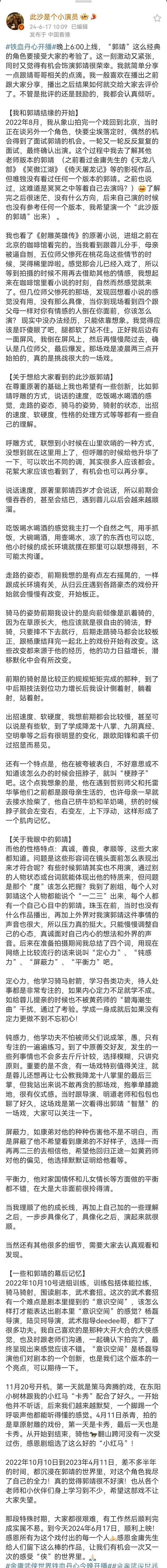 新版“郭靖”又来了!演员发千字作文表诚心,任嘉伦白鹿纷纷助阵