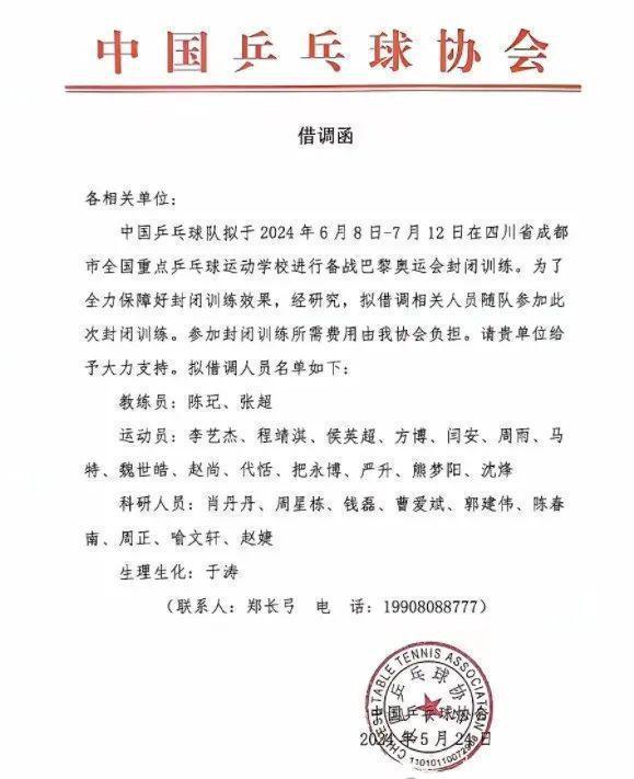 国乒成都封训最新消息:刘诗雯陪练孙颖莎,国乒成都伙食丰富引热议