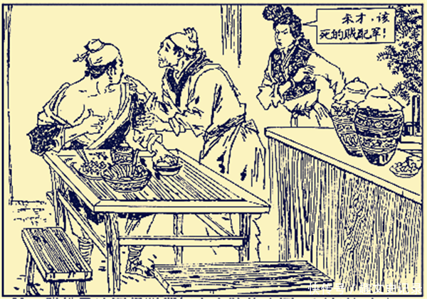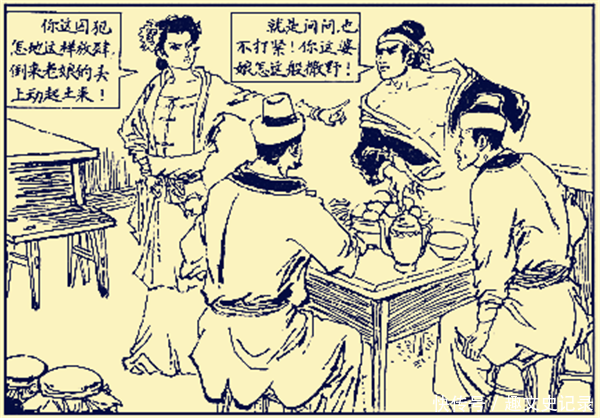 当时蒋门神的小妾正在帮他打理店铺生意,武松到了店中,直接让小二上酒,然后开始挑刺。他先说店家的酒不好,接连换了两次,终于换到味道还可以的酒。然后又开始问店家姓什么,小二回复姓蒋,武松却又反问道,为啥不姓李?这一看就是挑刺啊,蒋门神的小妾当场就想发作,结果被小二给拦下去了。武松见此计不成,又开始挑事。而这一次,他不再鸡蛋里挑骨头,而是直接挑明,让你们老板的老婆来陪我喝酒!