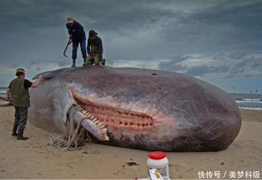 抹香鲸的下颚装备着密集而锋利的牙齿,非常适合撕咬猎物。成年雄性抹香鲸的体长可达17米,体重则在雌性的12米左右,介于14吨到50吨之间。它们对乌贼、章鱼等软体动物情有独钟,尤其是体型庞大的大王乌贼,其体长可达10多米,却也难逃成为抹香鲸的猎物。