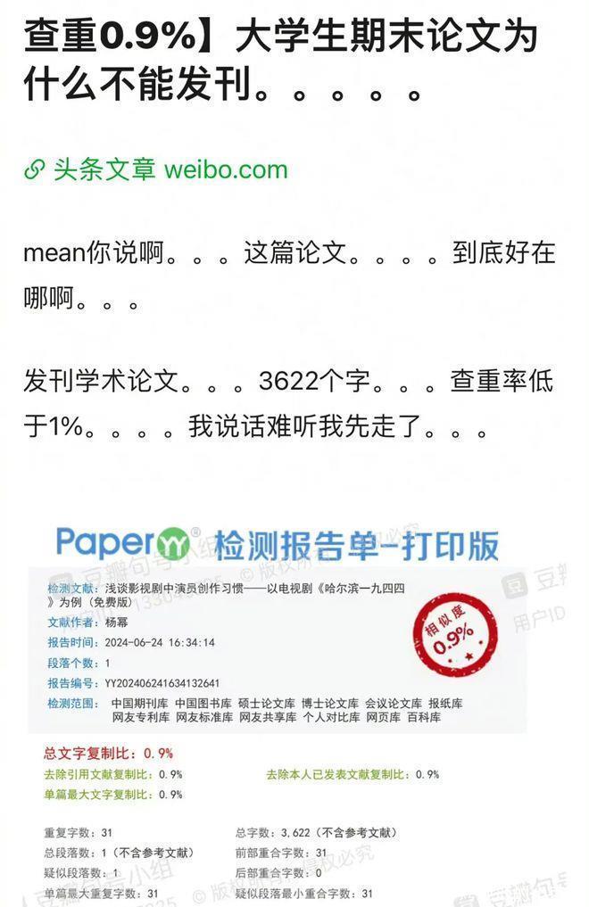 杨幂太尴尬了!发表了一篇论文查重率只有09%,全文只有3622个字
