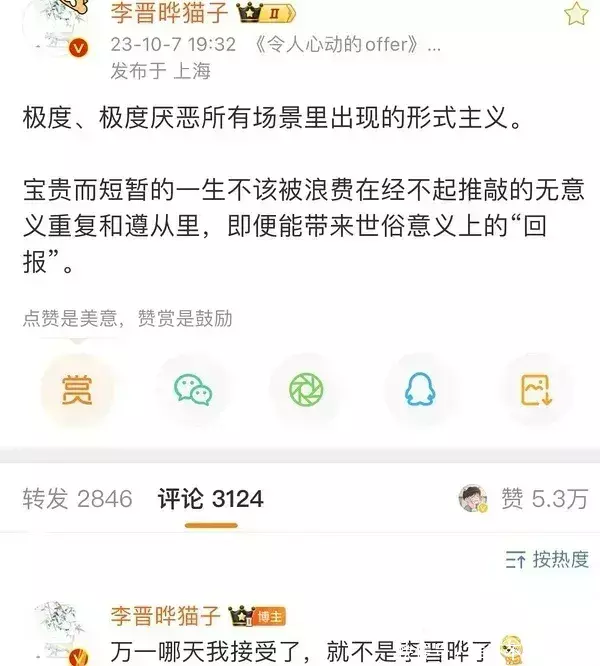 也有网友表示他又不是不愿意打广告喝那个饮料,只是不愿意在他的歌手正在唱歌、比赛的时候喝,他觉得人家在唱歌他应该是认真听,这代表了他对他的歌手的尊重,这样也要被骂吗,明明可以很多个节点打广告,为什么非要在歌手唱歌的时候让他打?