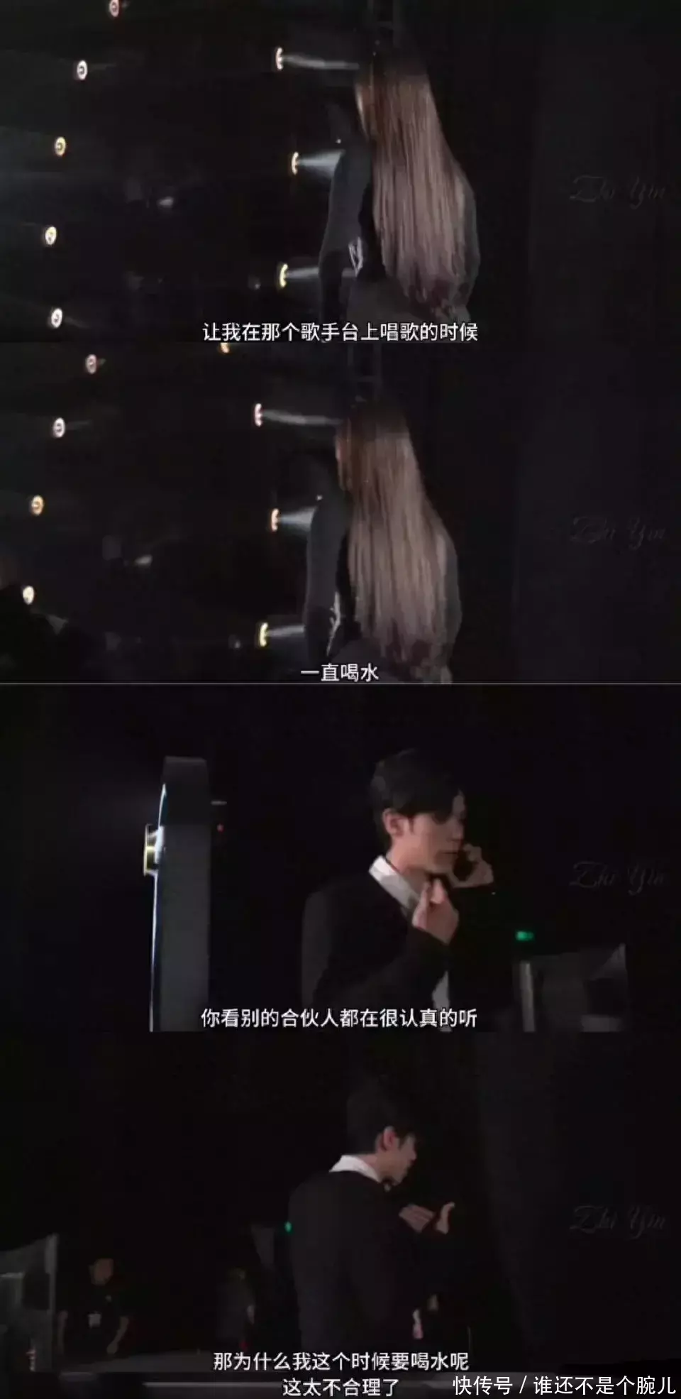 上周凡希亚唱歌的时候,赞助商让合伙人李晋晔喝一口那个饮料,他不愿意喝。他认为这样很不尊重凡希亚,人家在上面唱歌,作为合伙人在镜头前喝饮料。