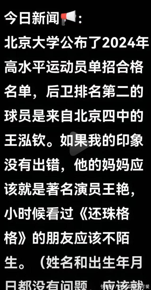 晴格格王艳儿子保送北大:高水平篮球运动员、北京四中太优秀!
