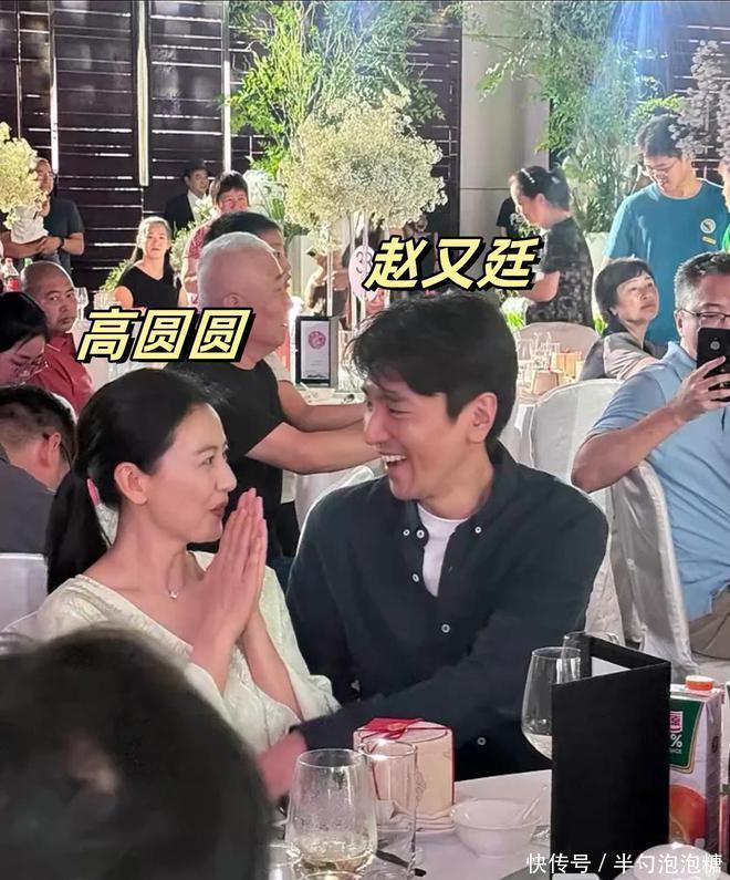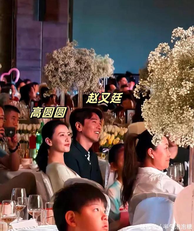 高圆圆赵又廷参加婚礼,穿绿裙戴珠宝抢风头,两人席间秀恩爱!