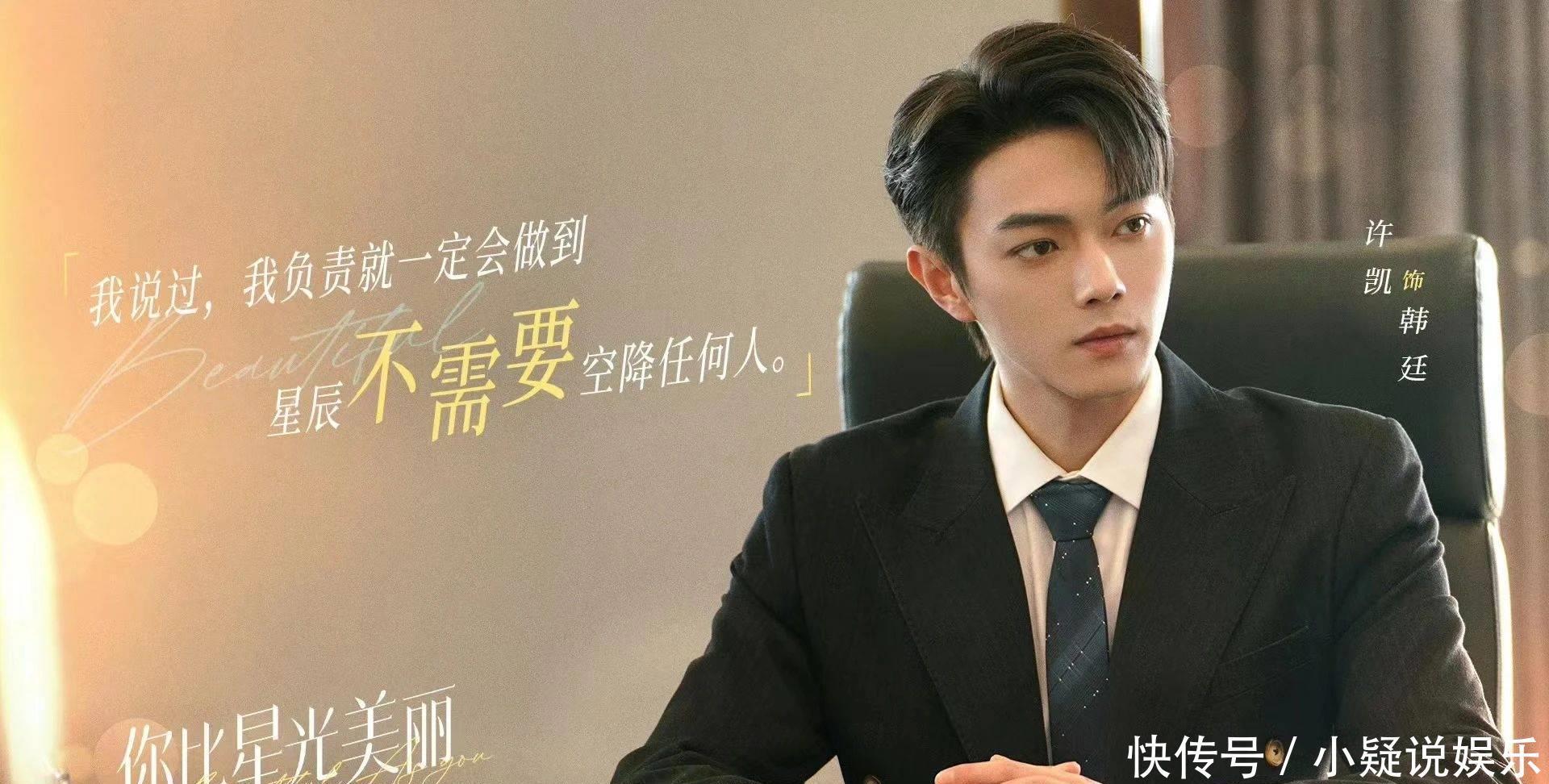 许凯在《你比星光美丽》中饰演的韩廷,作为东扬集团未来的继承人,最大的对手就是他的堂姐韩苑。这姐弟两个将会围绕企业发展、企业变革和继承权问题发生激烈的冲突和博弈。这些冲突表面的核心是继承权之争,深层核心却是初心和观念之争。
