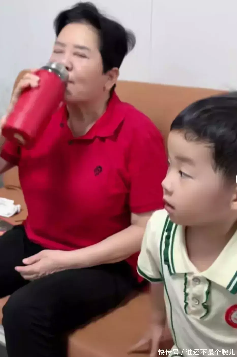 抱起红色保温杯,咕噜咕噜喝个不停。