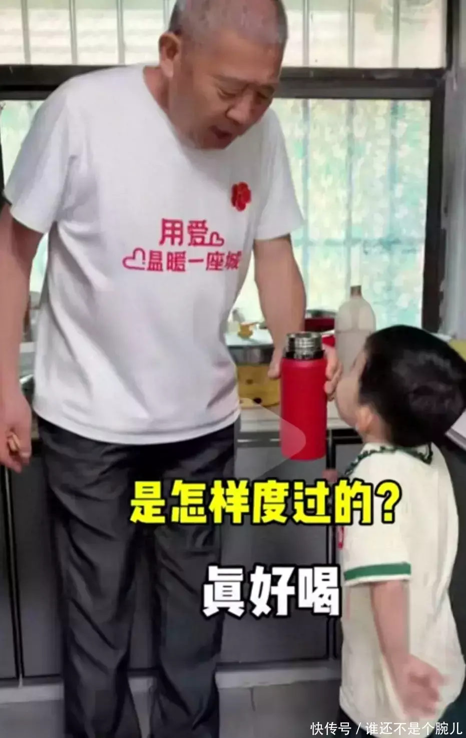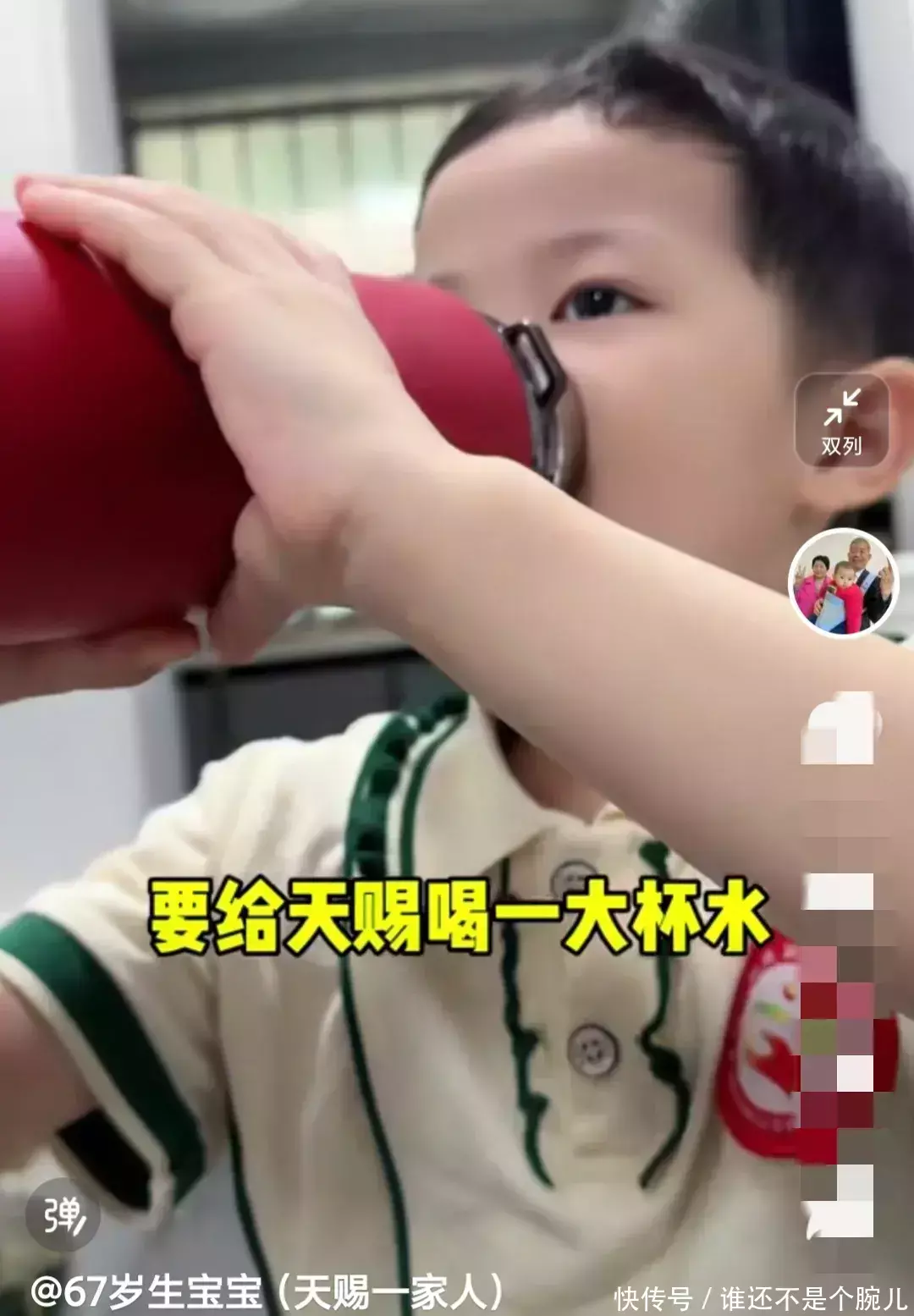 天赐父亲发文累但很快乐,一家三口共用一个杯子,网友称不讲卫生