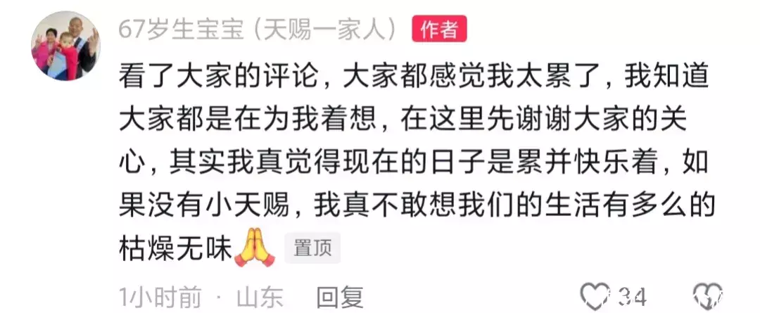 天赐父亲称自己累着并快乐着,如果没有天赐的到来,想必晚年生活一定枯燥无味。
