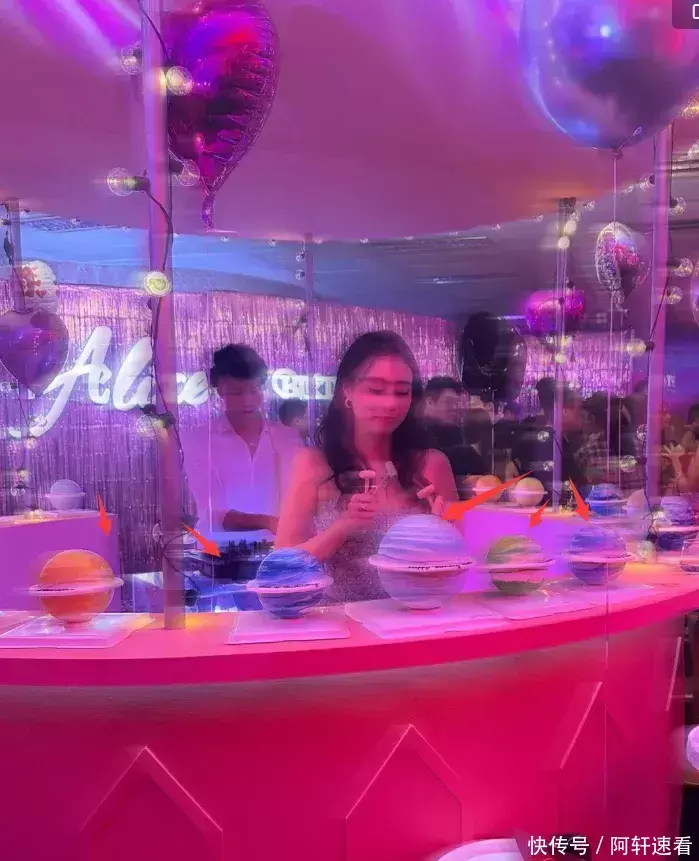 生日现场的布置也相当有排面,光是生日宴上供宾客们,分享的星球系列生日蛋糕的价格便不便宜。