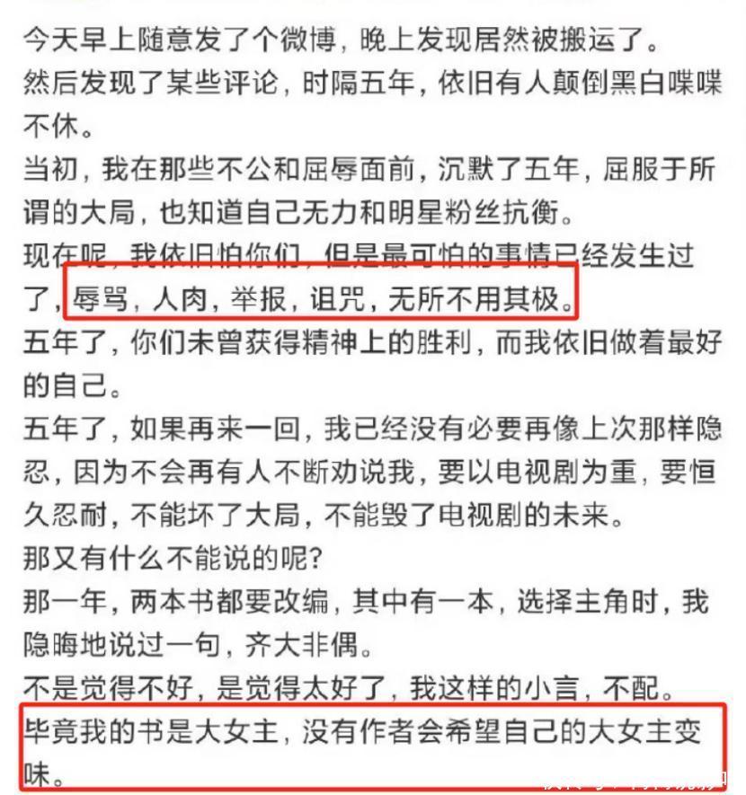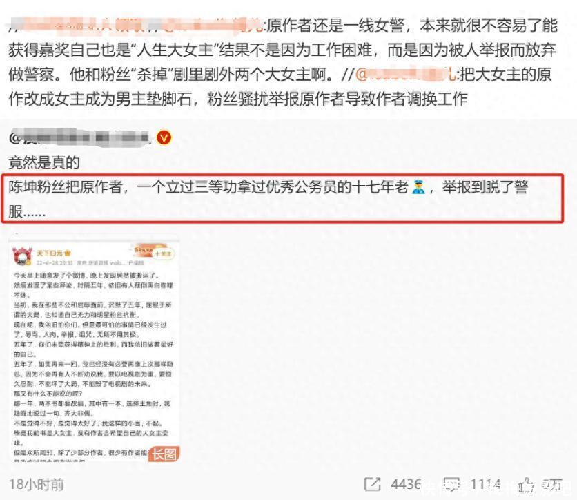 她连发了几篇小作文,内涵是陈坤团队将自己的大女主戏改成了大男主戏。