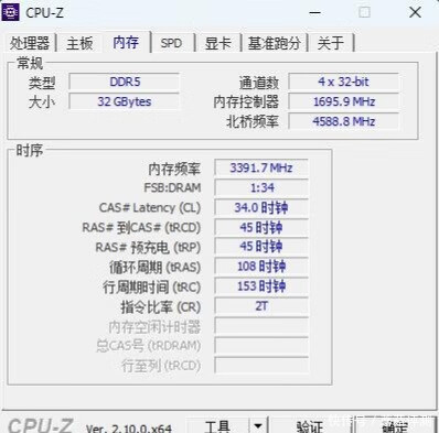 ▼内存的频率和基础时序保持不变,依然是6800MHz、34-45-45-108。