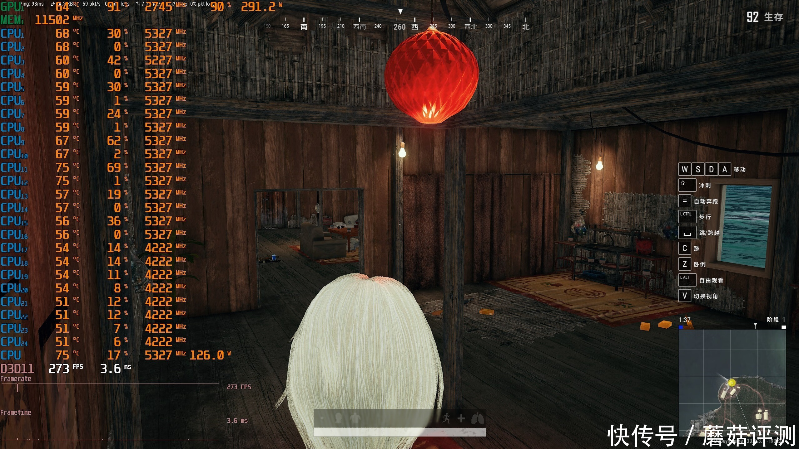 ▼室内游戏帧数在273帧左右,整体表现还行。