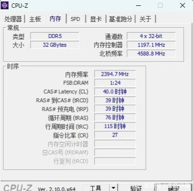 ▼默认开机的情况下,内存频率会稳定在4800MHz,时序40-39-39-76。