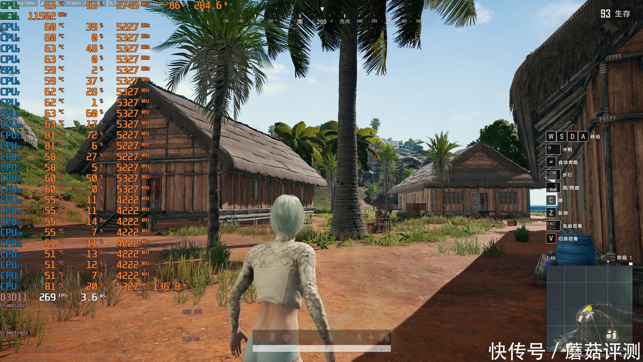 ▼游戏实测,绝地求生PUBG,2K分辨率,全高画质,室外游戏帧数在269帧左右。