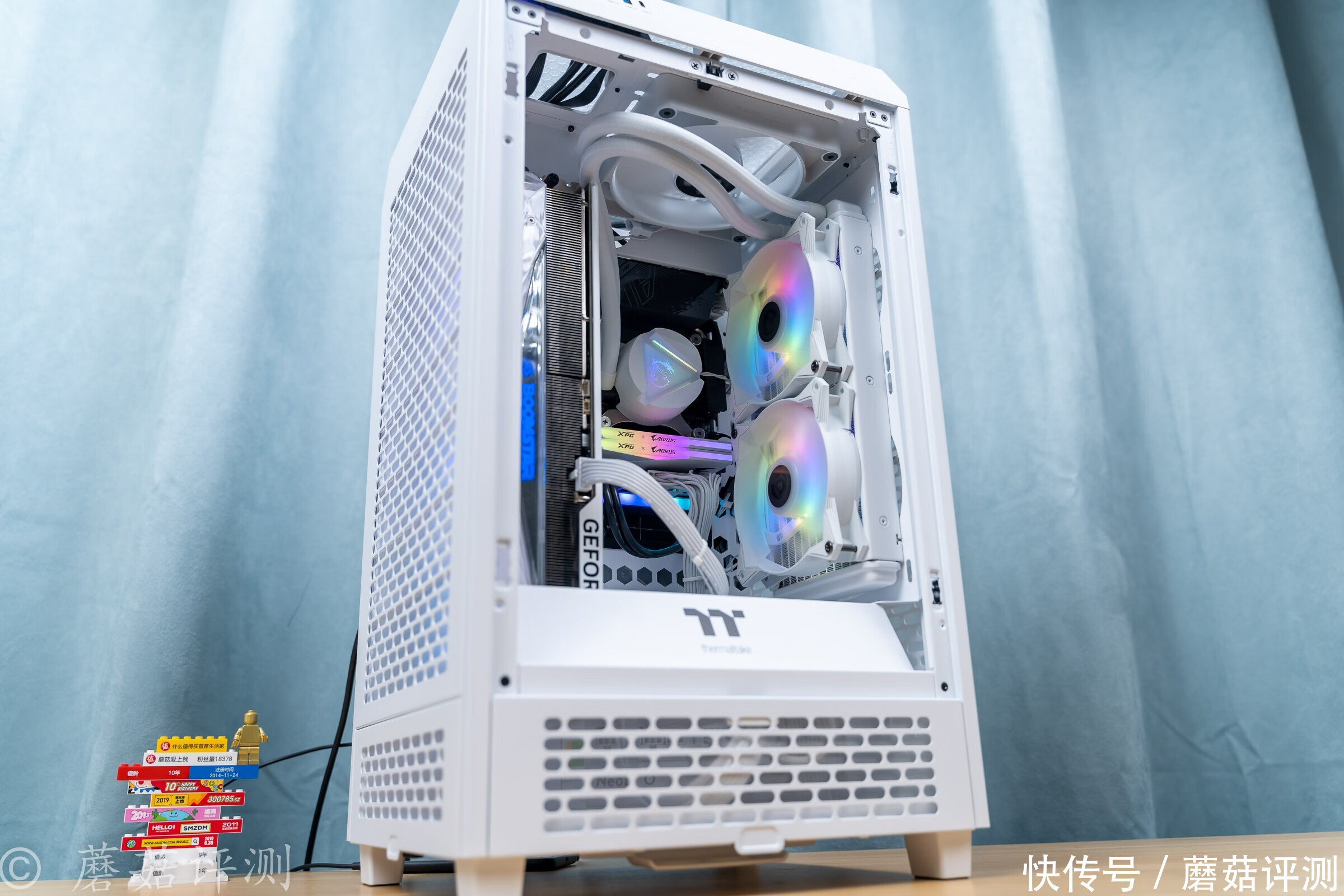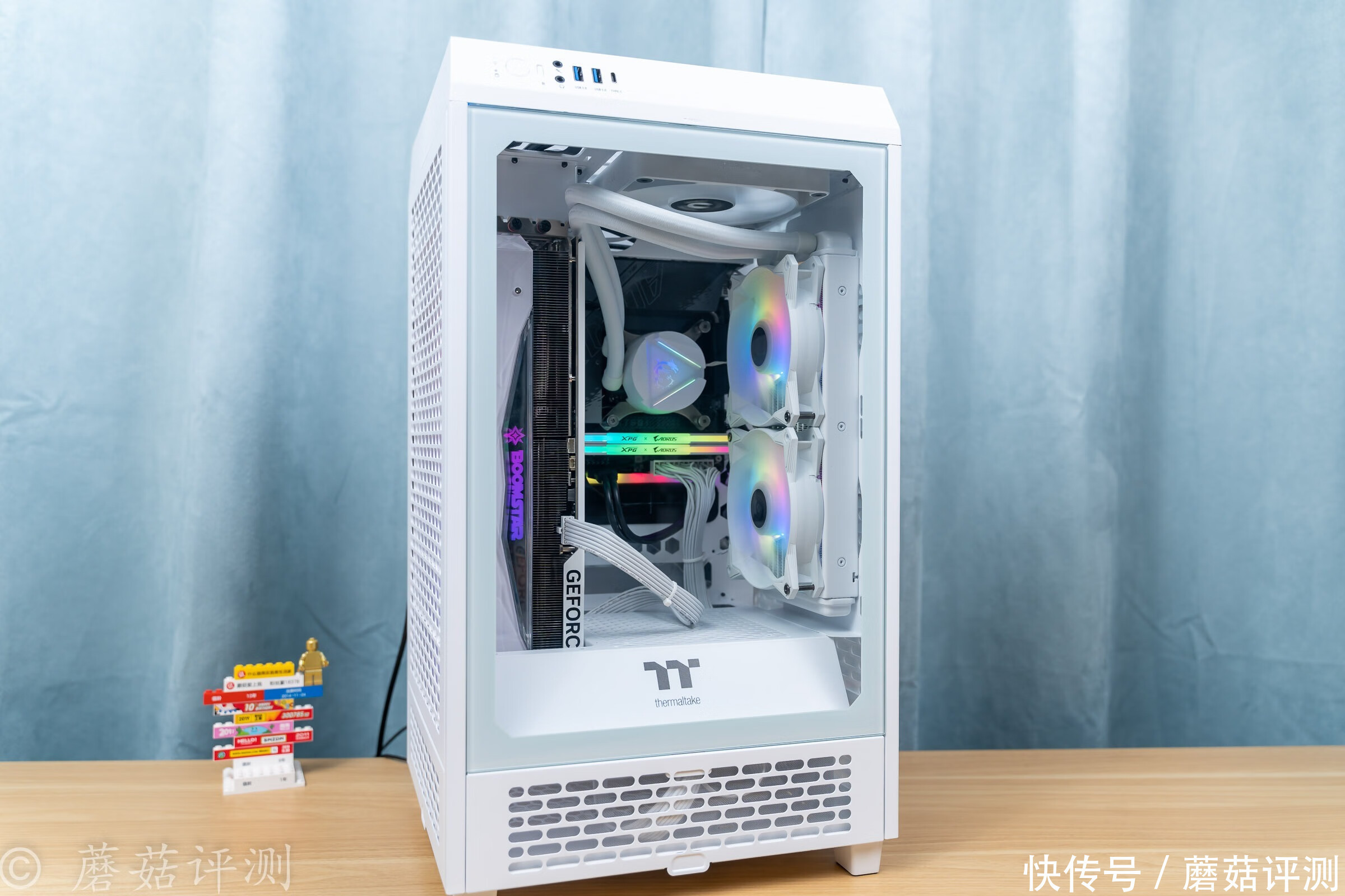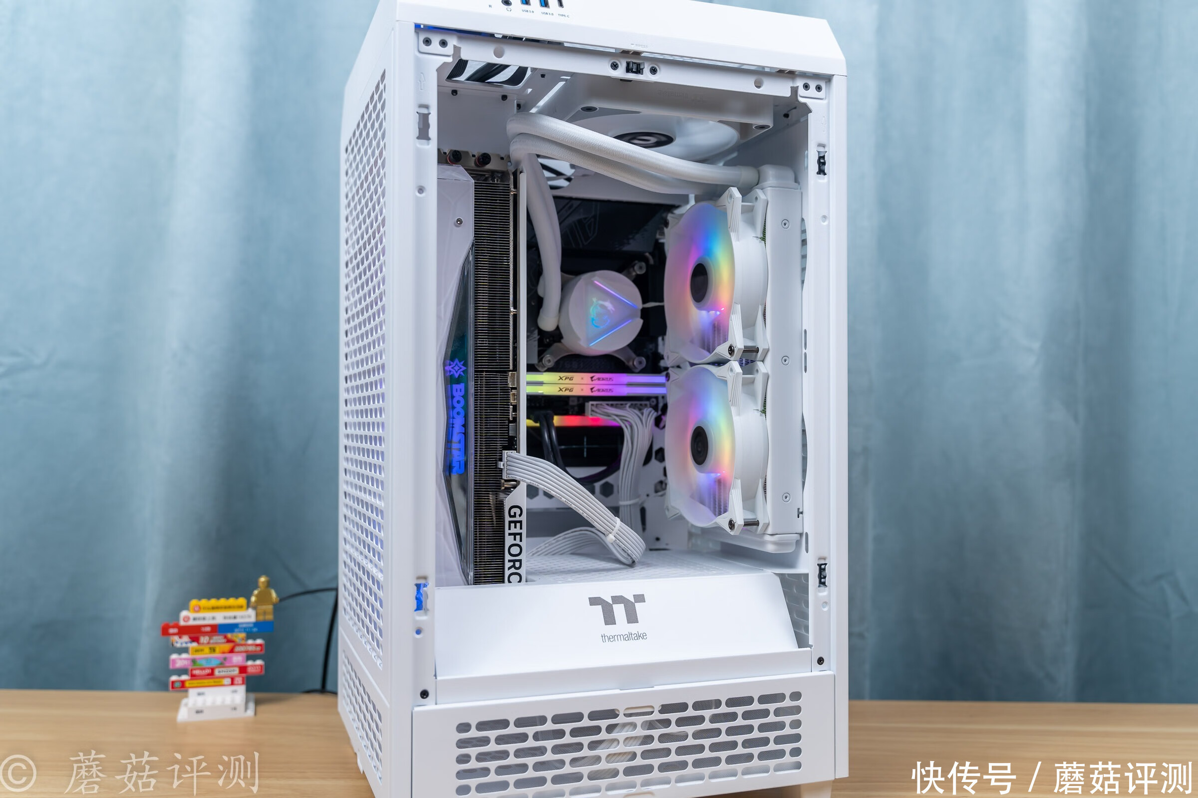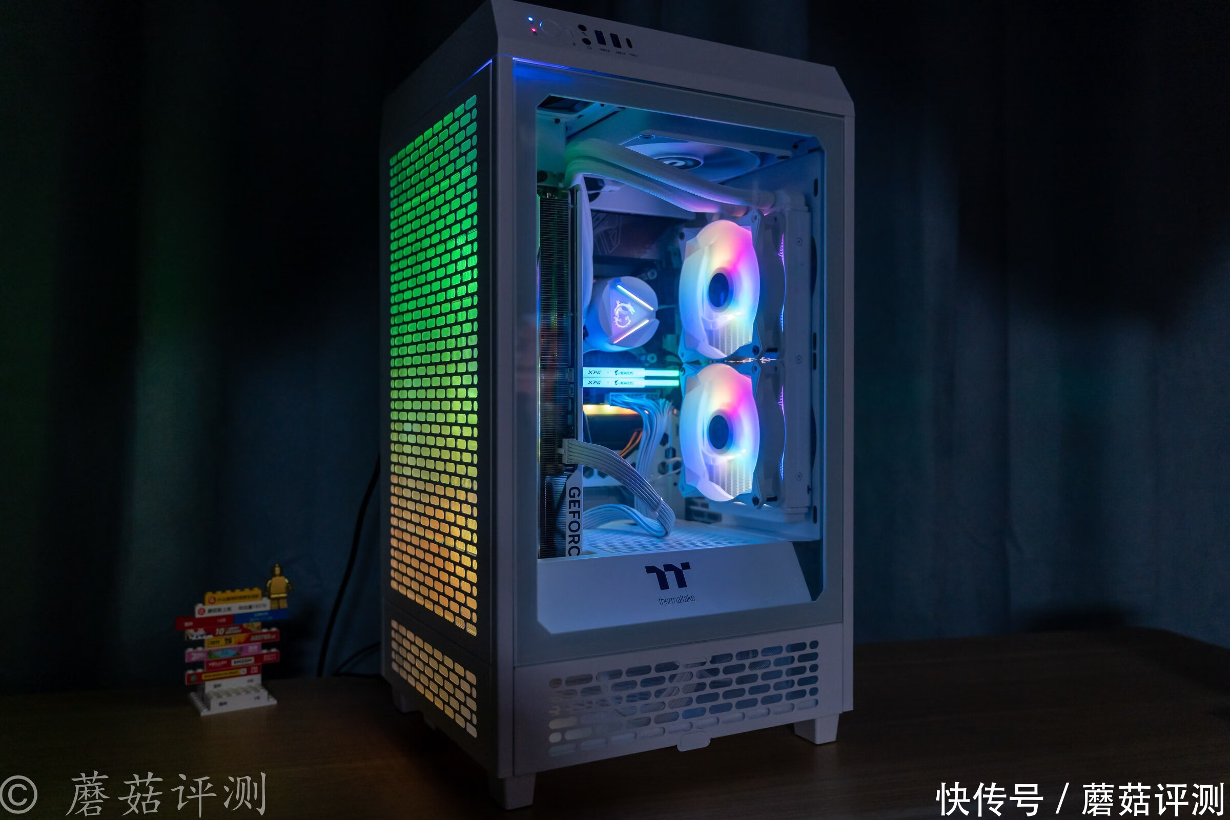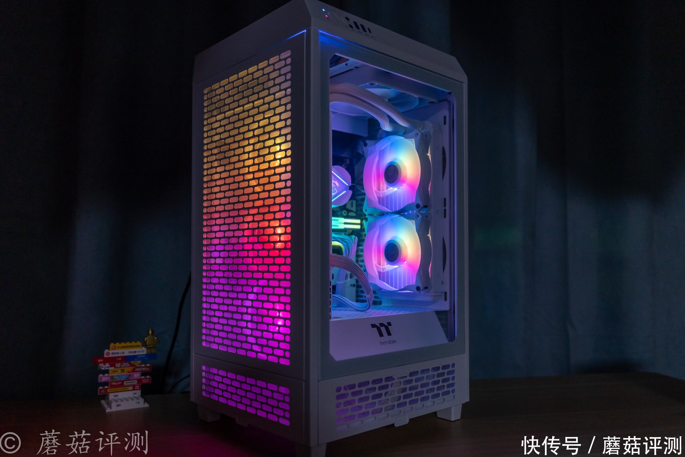 ▼稍微拉远一些,整机的视觉观感还是非常不错的,后期可以考虑把机箱顶部的机箱风扇换成支持ARGB灯效的。