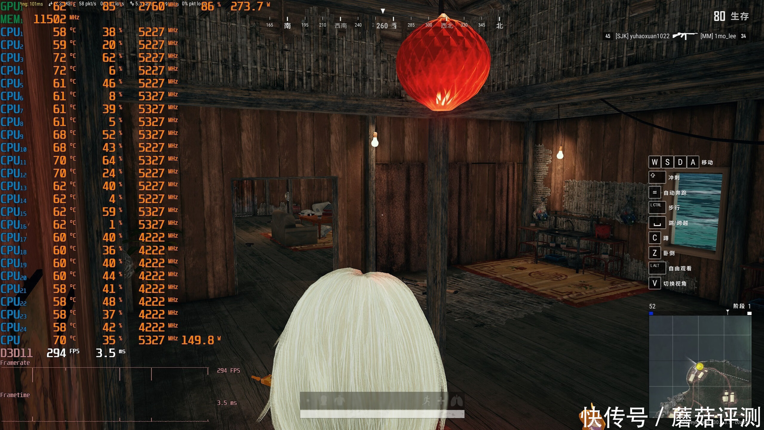 ▼室内游戏帧数在294帧左右,游戏帧数提升也非常明显。