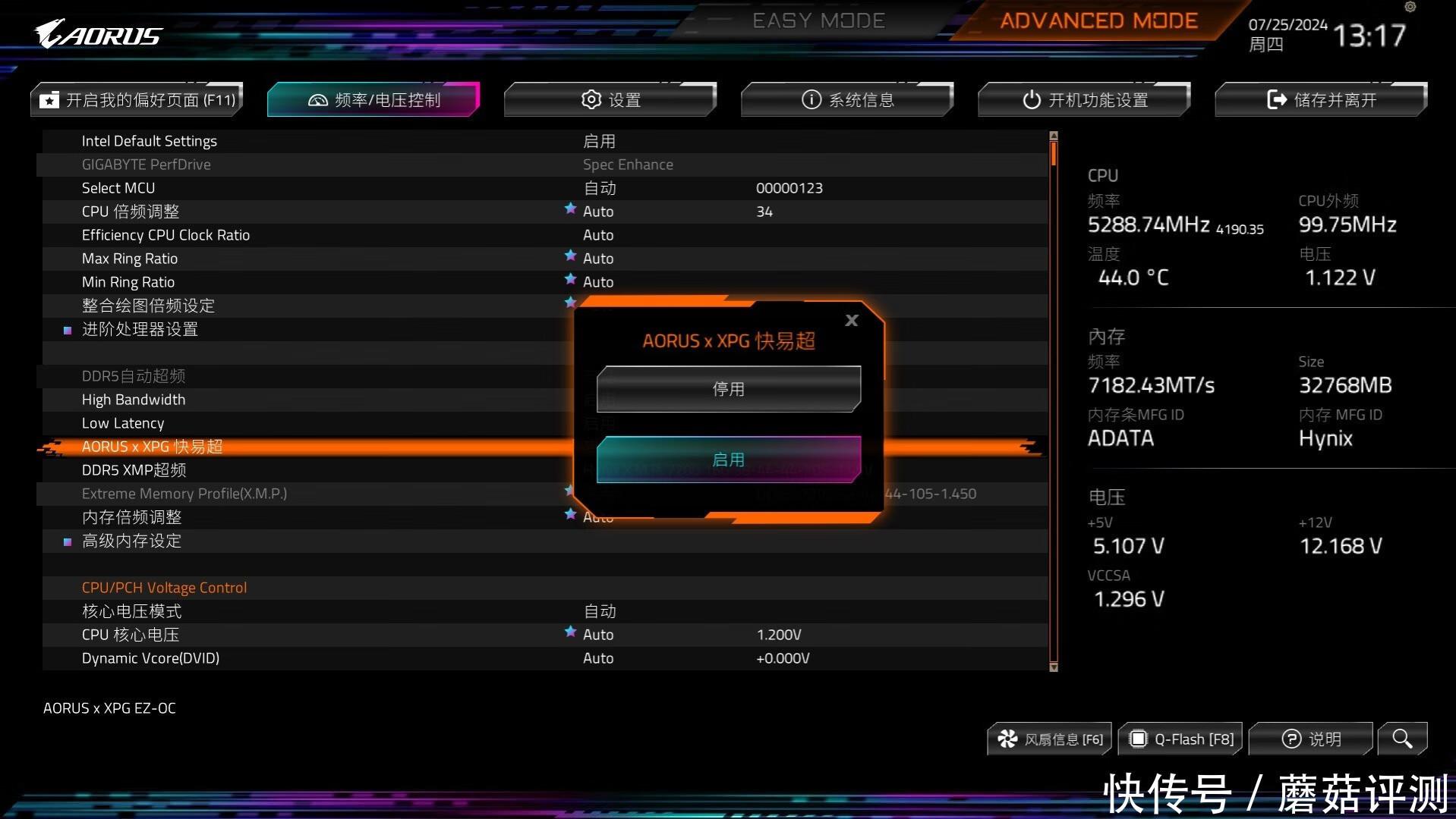 ▼威刚XPG这块白曜雕内存,搭配技嘉B760I AORUS PRO迷你雕主板,可以在主板的BIOS中开启一个“AORUS x XPG EZ-OC”的功能,中文名称叫快易超,简单明了。