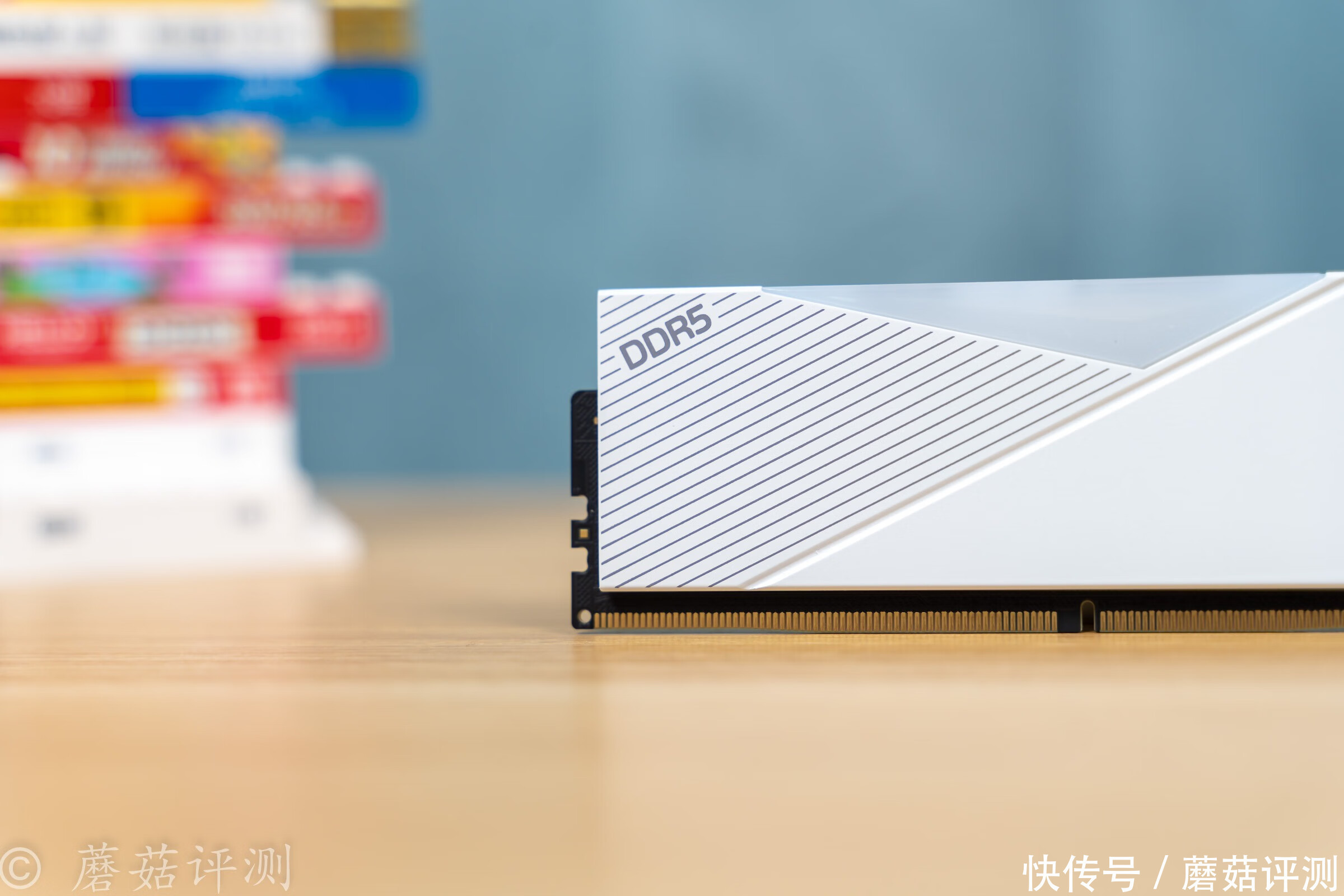 ▼内存条左侧是灰色的斜条纹的装饰,左上角有DDR5的字样。