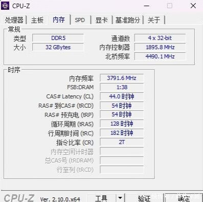 ▼开启这个功能之后,内存基础频率直接提升到7200MHz,时序38-44-44-105。