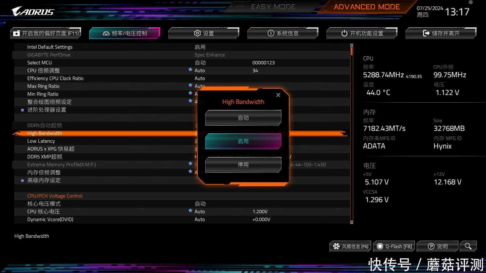 ▼蘑菇又简单的小超了一下,海力士的颗粒,潜力你懂得,内存频率可以稳定在7600MHz,时序44-54-54-128。