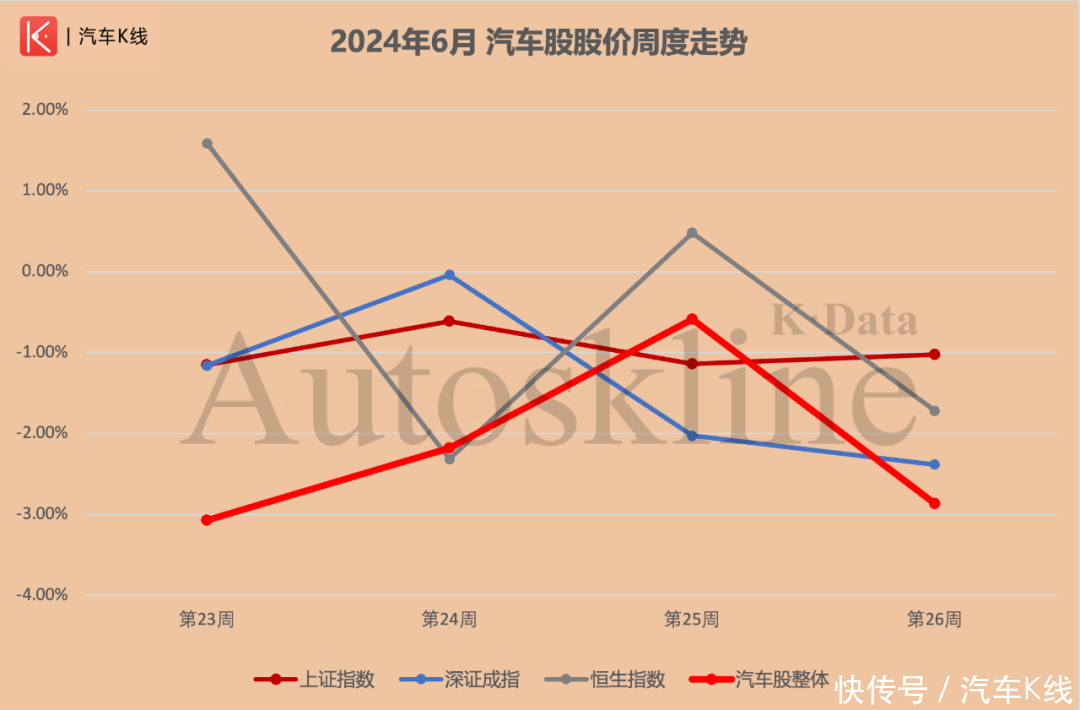 回看整个6月,国内两大股指连续4周(第23周~26周)出现下跌,汽车股同样没能幸免。