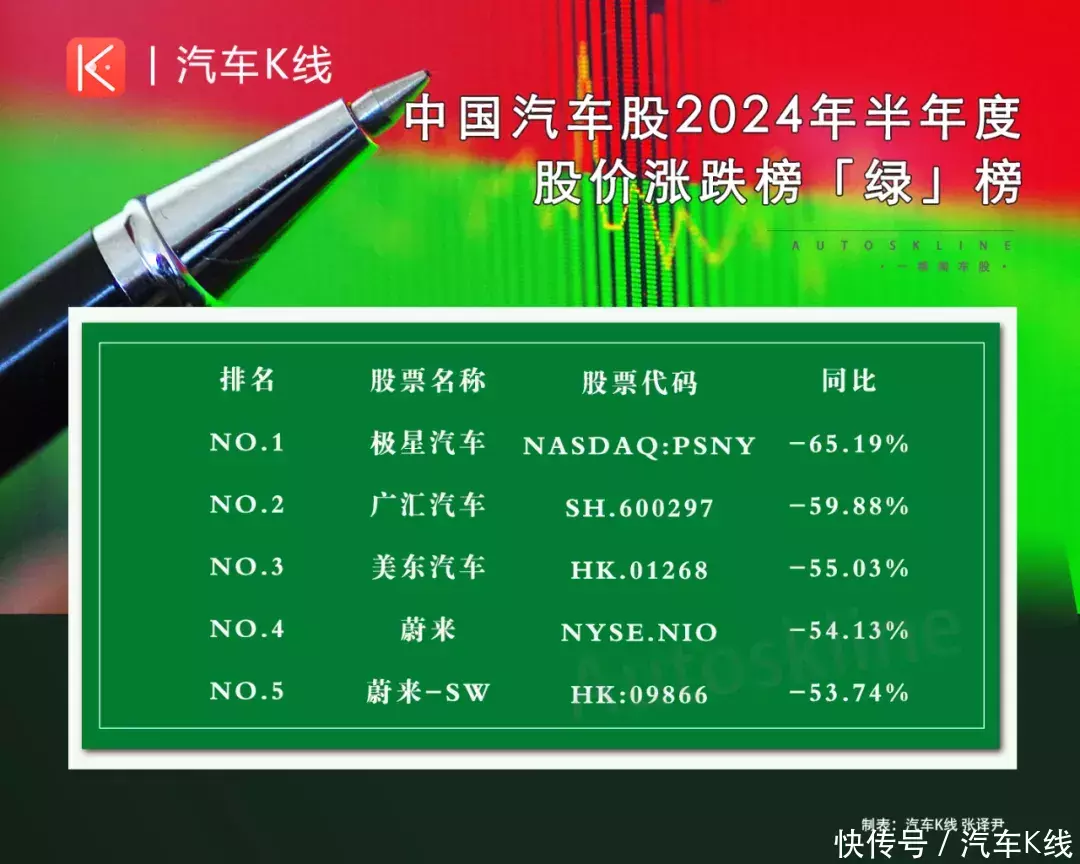 首先是绿榜,上榜5只个股当中,除沃尔沃与吉利合资的极星