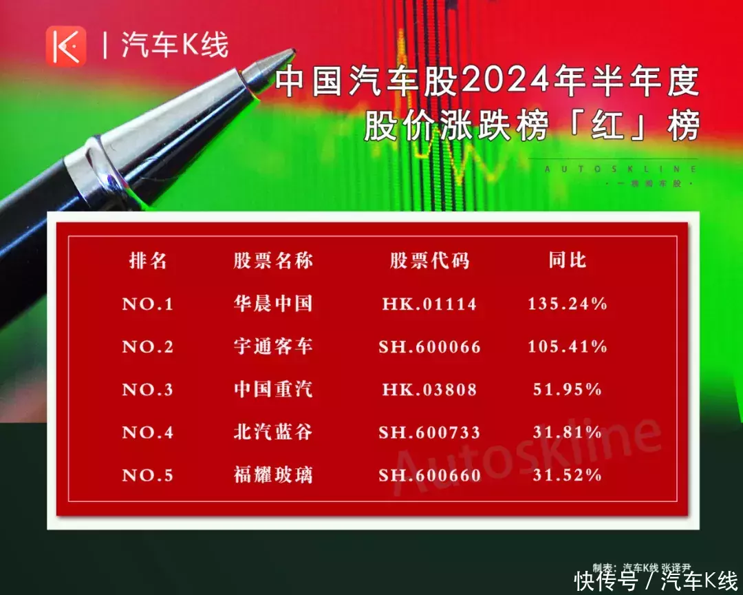 再来看2024上半年领涨的两只个股,其中之一是同时领涨6月与上半年的华晨中国,另一只是曾在一年前,排名第2位的宇通客车