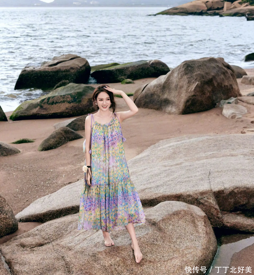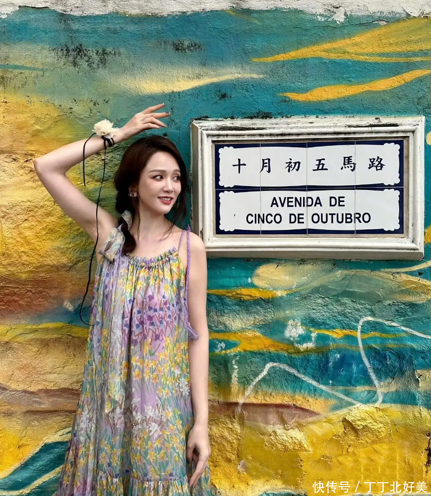 陈乔恩结婚后换了风格,穿碎花裙+麻花辫去度假,45岁美出新高度