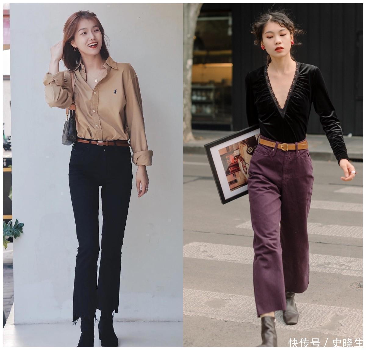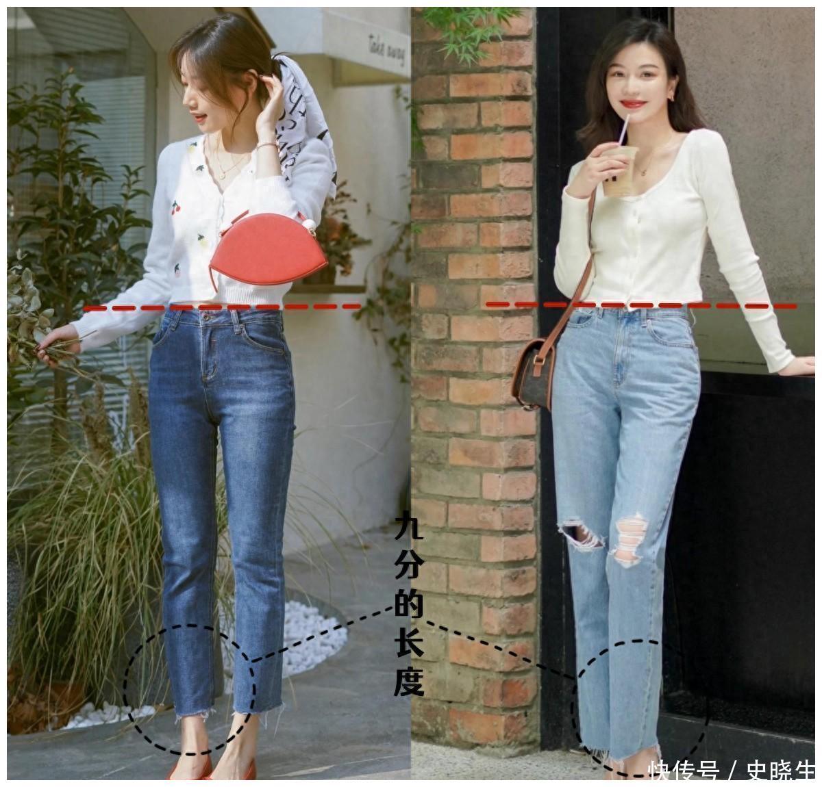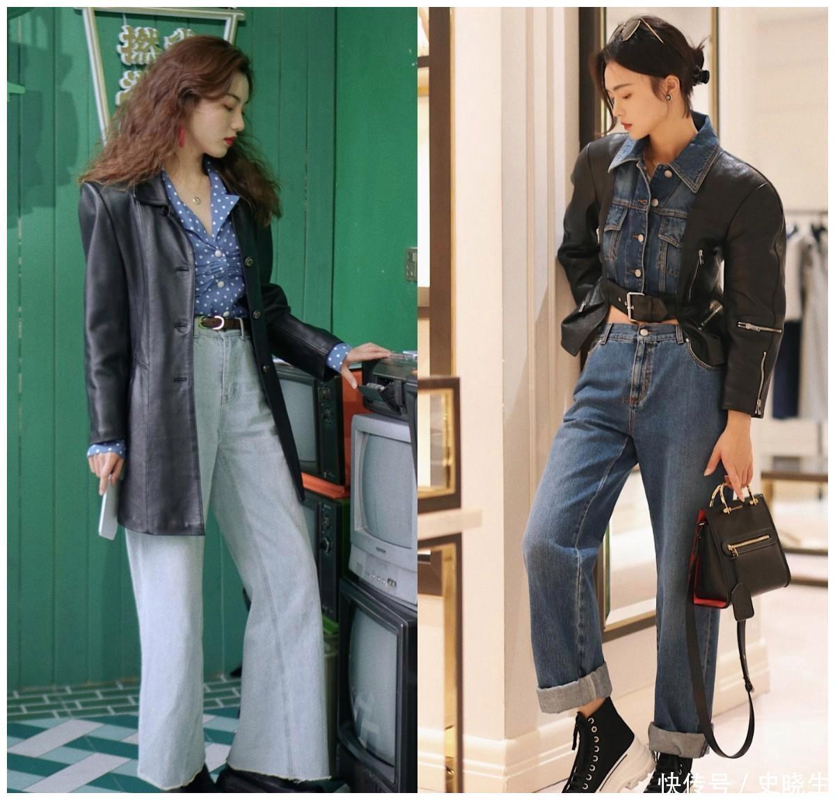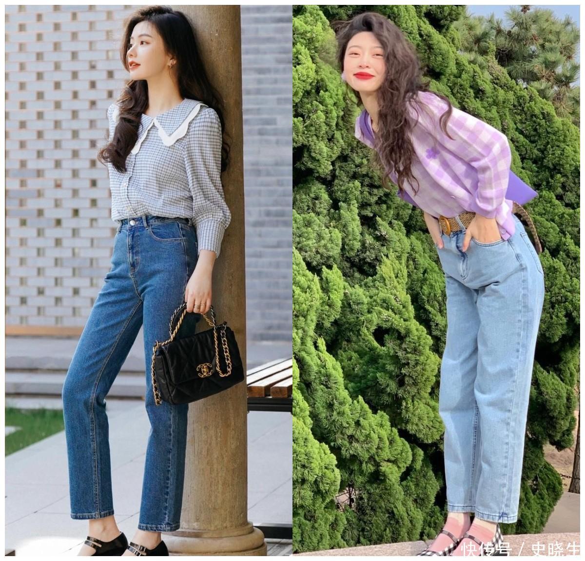 如果你想要穿得更加时髦一些,可以选择一些有设计感的直筒裤,直筒裤的版型不一样,穿搭出来的效果也不一样,大家看下面对比图片就能看出来。这些小细节可以让你的穿搭更加有趣,也可以让你看起来更加时尚。