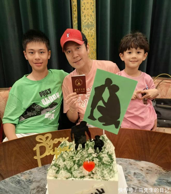 55岁蔡国庆晒父子三合照,13岁大儿子身高惊人,6岁小儿子嘲可爱