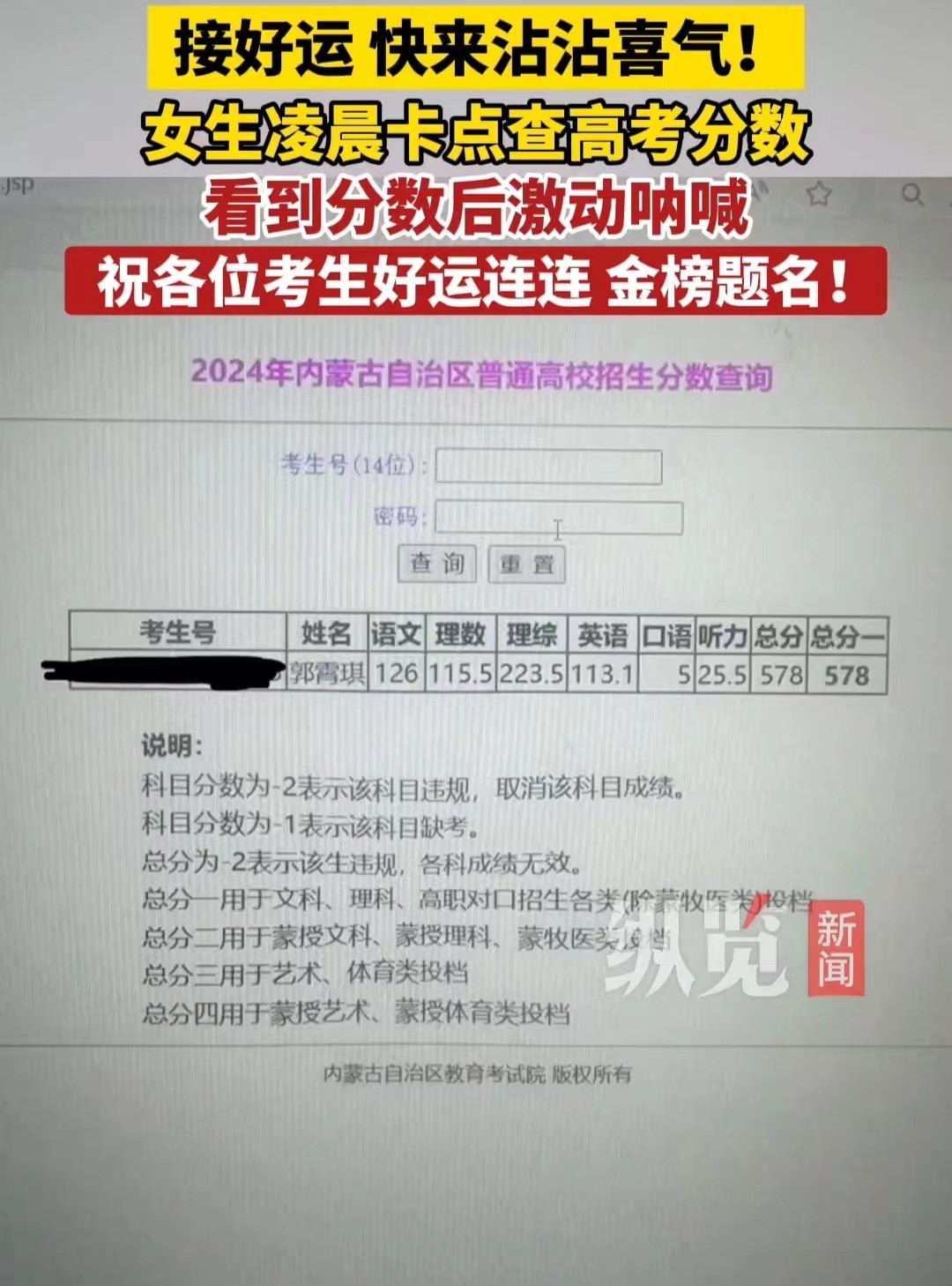 2024高考出成绩,一考生578分呐喊,一考生669分哭泣,好大学稳了