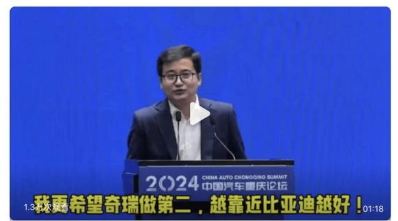 近期,比亚迪李云飞在重庆论坛上,就直接点赞了奇瑞的出色和成就,并直言更希望中国第二的位置是奇瑞。