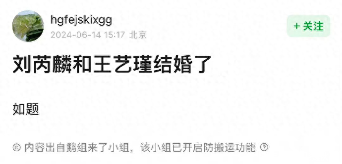 网传刘芮麟王艺瑾结婚 工作人员回应“是假的”