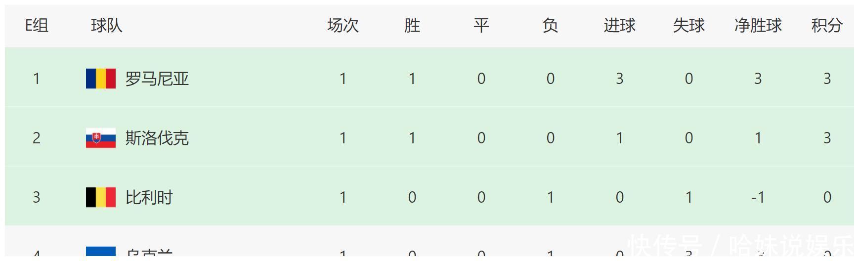 这样,罗马尼亚、斯洛伐克同积3分,分列小组前二,比利时、乌克兰同积0分,分列第三、第四,导致整个出线形势混乱。