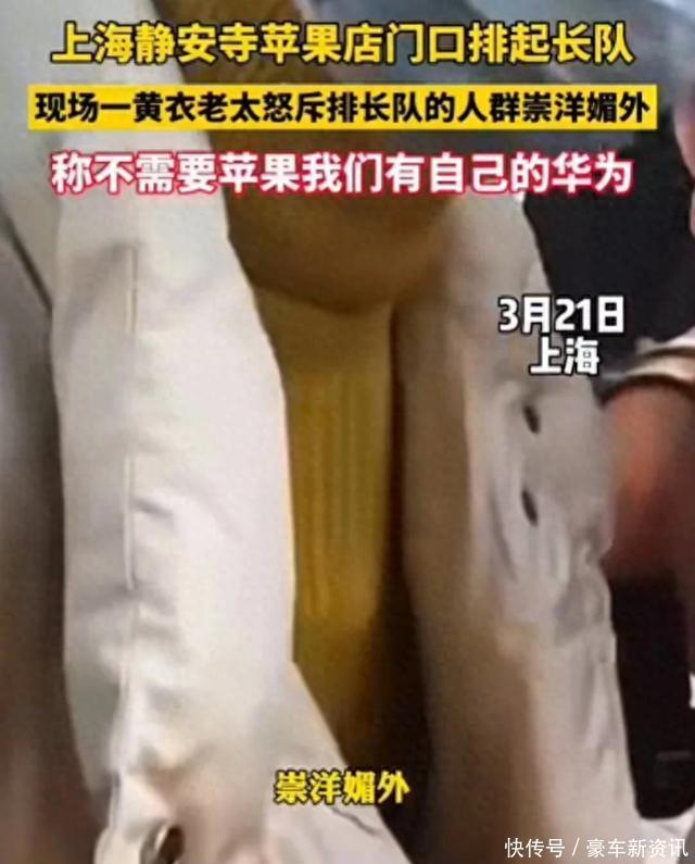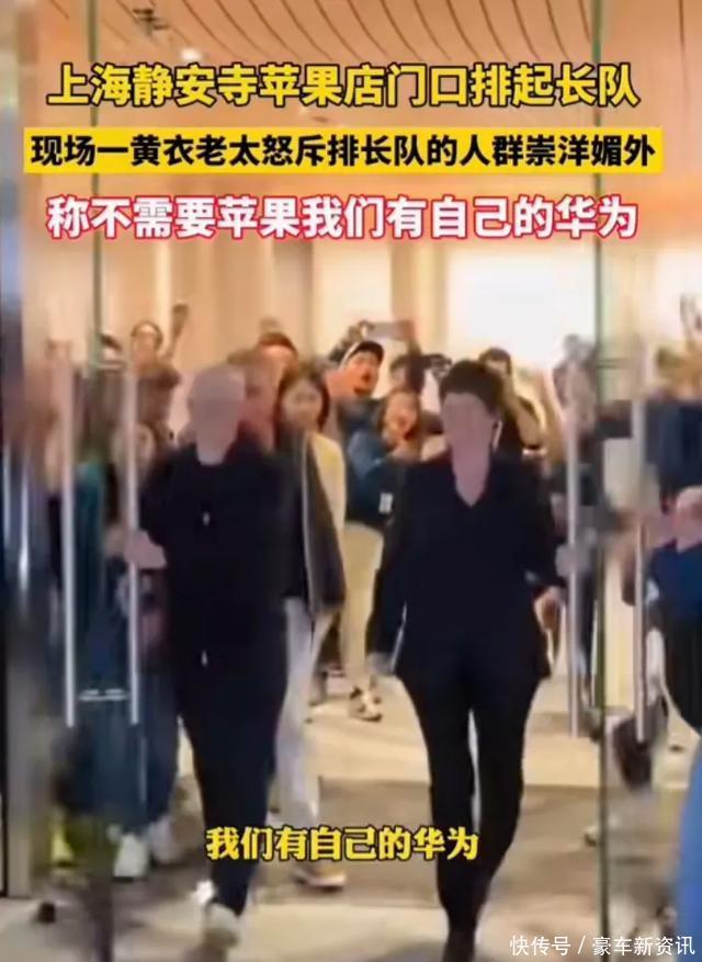 上海苹果店门口排长队,老太太怒骂果粉崇洋媚外,顾客怒怼老太太