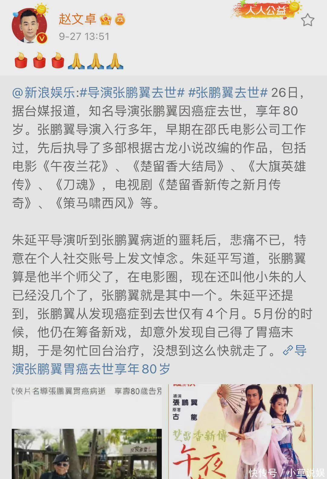 古龙“御用”导演张鹏翼去世,5月还在筹备新戏,赵文卓发文悼念