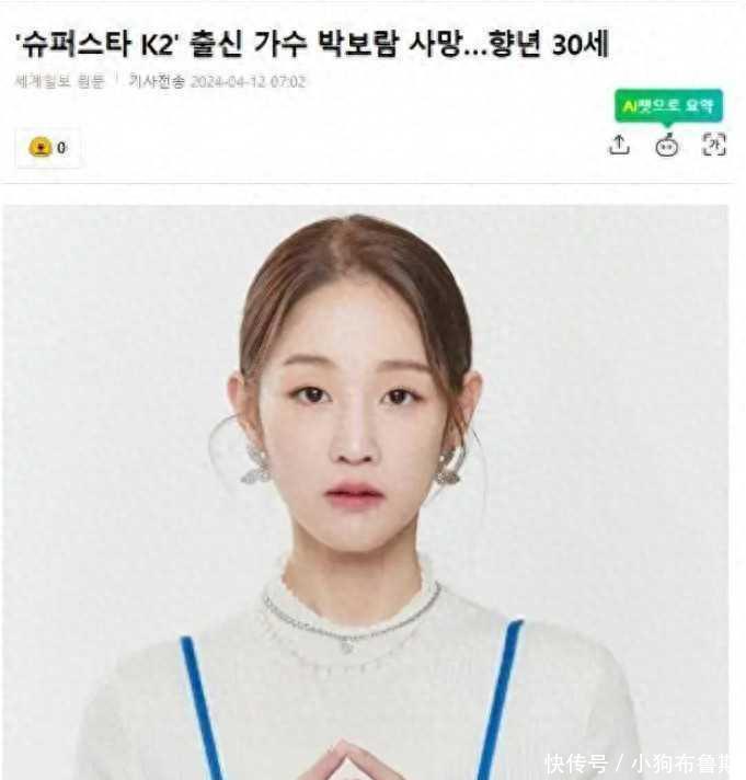 4月12日,韩国娱乐圈再次传来令人痛心的消息。据韩国媒体报道,30岁的知名女星兼歌手朴宝蓝于11日不幸离世,韩国警方正在调查死因。这位原本准备着迎接自己出道10周年的艺人,却在这个黄金时刻突然离开了人世,让人扼腕叹息。