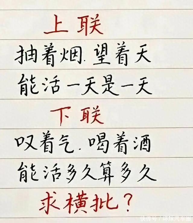 求横批,抽着烟,望着天,能活一天是一天,幽默搞笑段子,细品