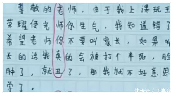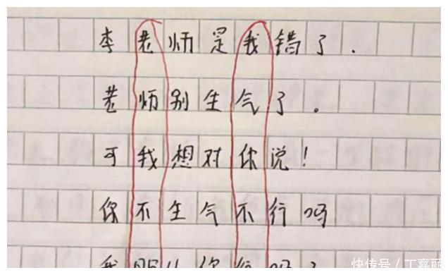 其实这个孩子写的检讨书有点过于流于形式,为了凑字而特意把第一行给对齐,以至于每行的字体不一,让老师非常容易发现。