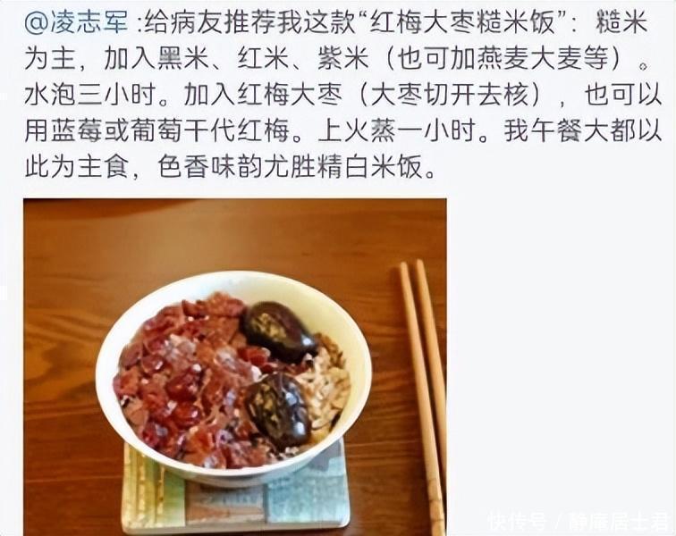 出院之后,凌志军推掉了自己全部的工作,改掉了熬夜的坏习惯,每天早睡早起。他还改掉了不规律的饮食时间,舍弃掉了油腻和高热量的食物。